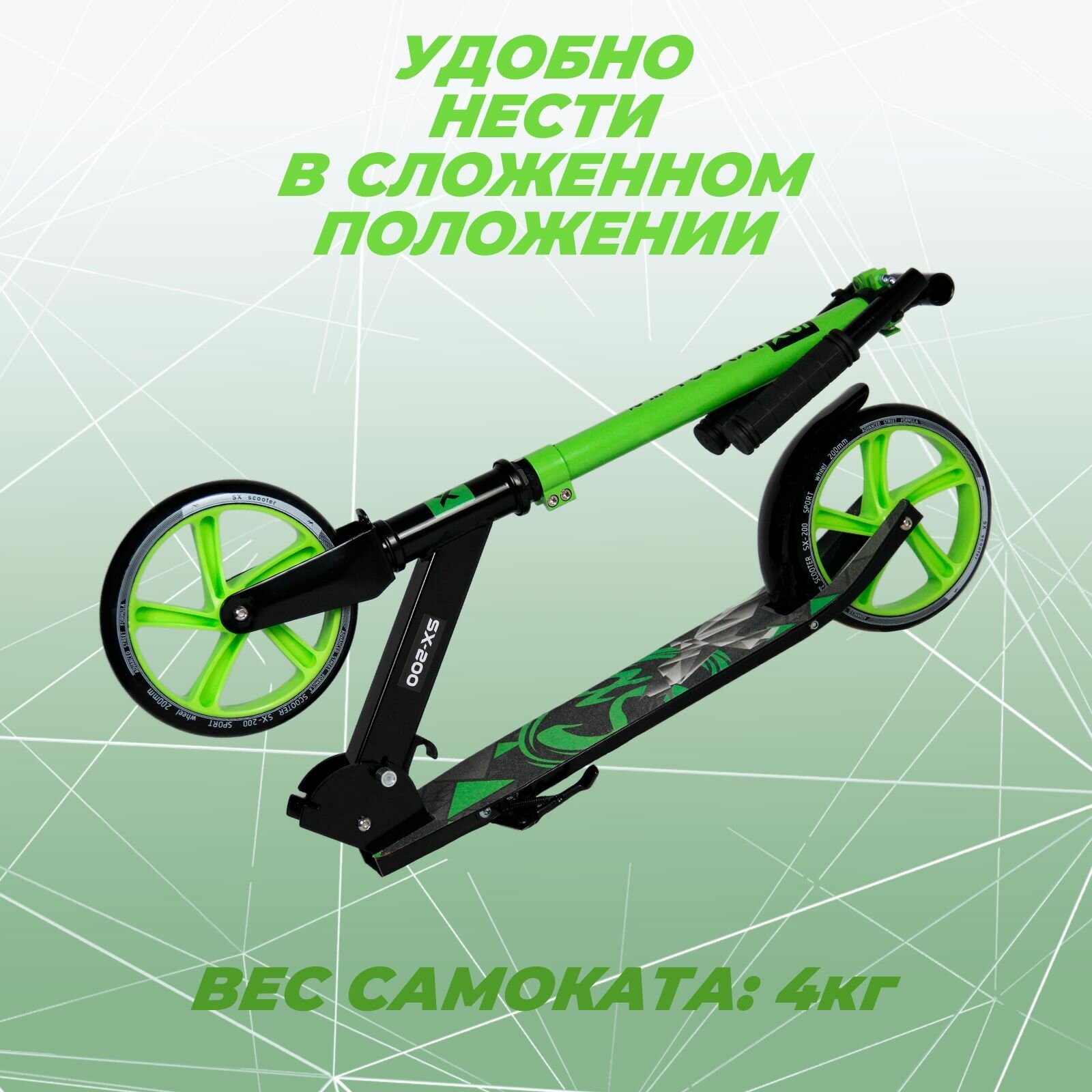 Самокат двухколесный детский, складной, 200 мм, зеленый интересное: