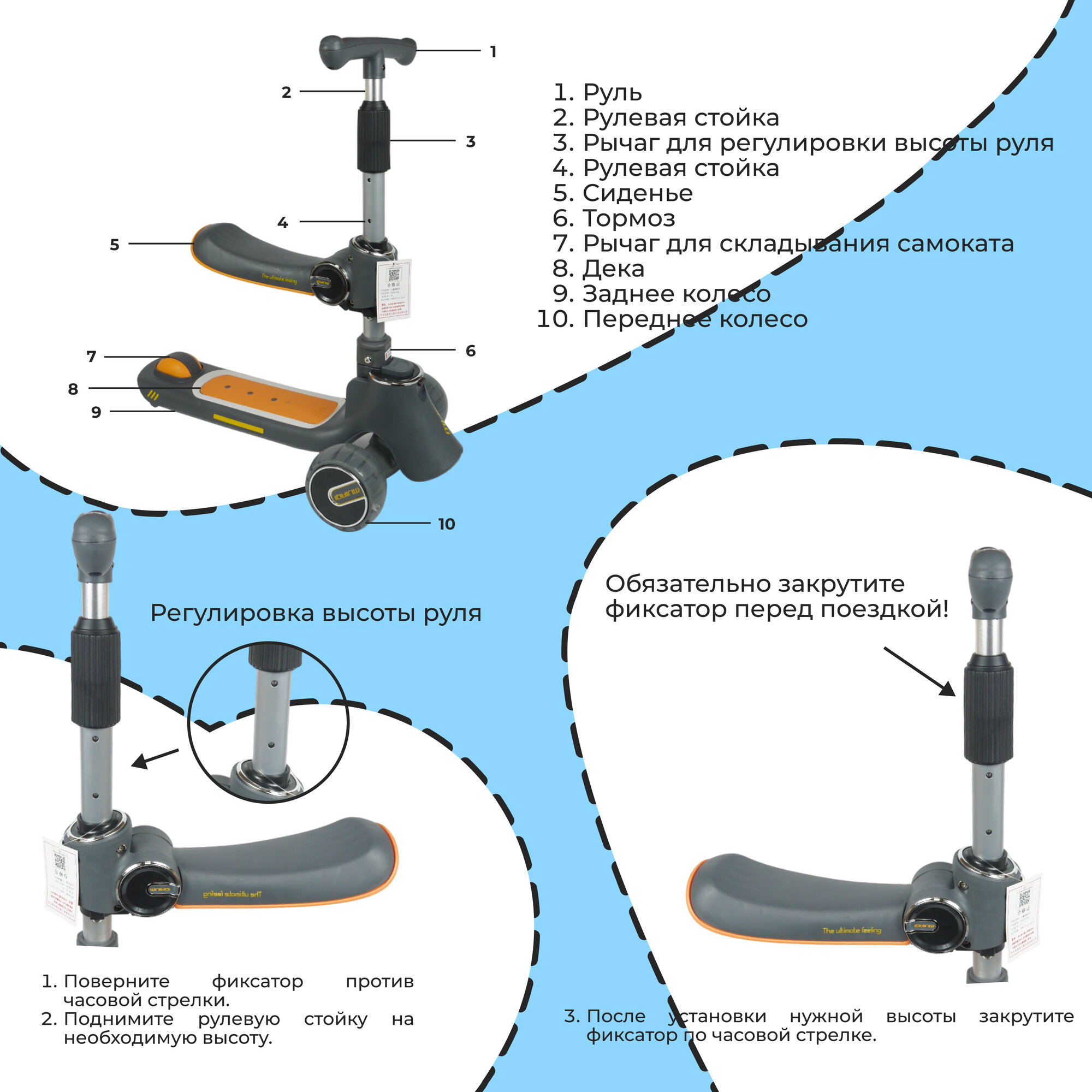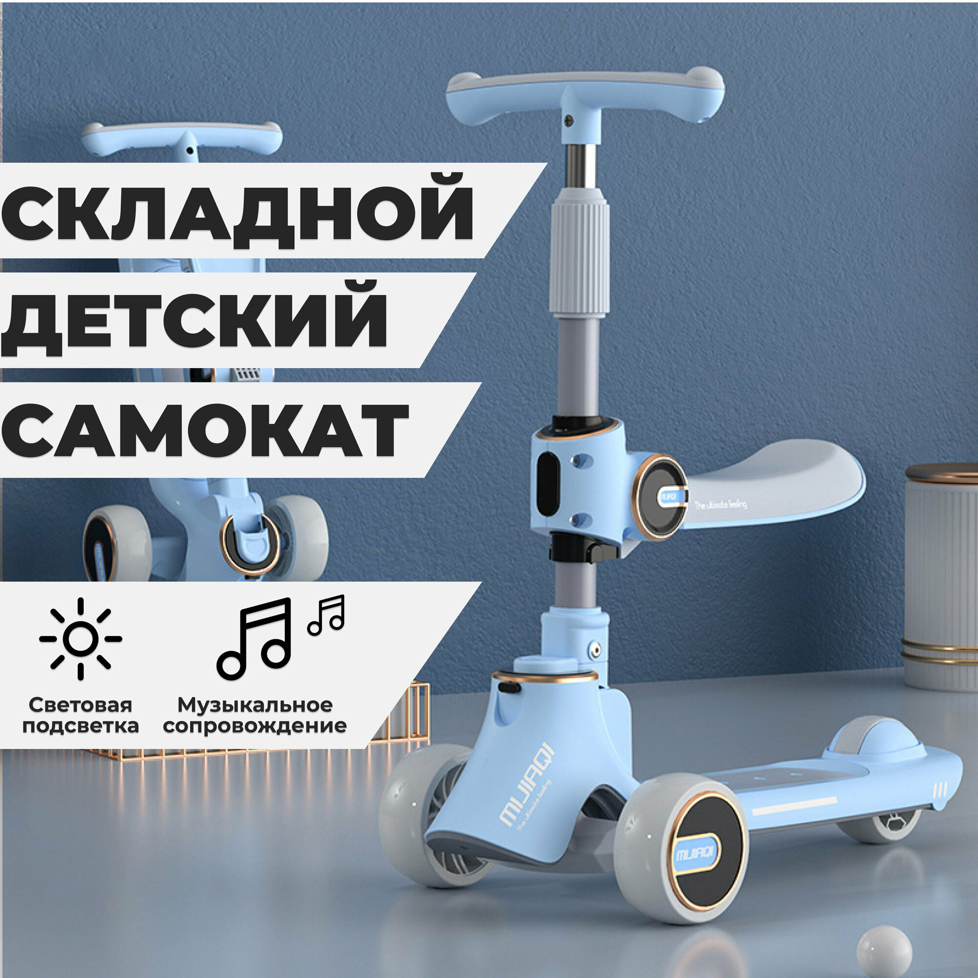 Самокат детский трехколесный с сиденьем, голубой интересное: