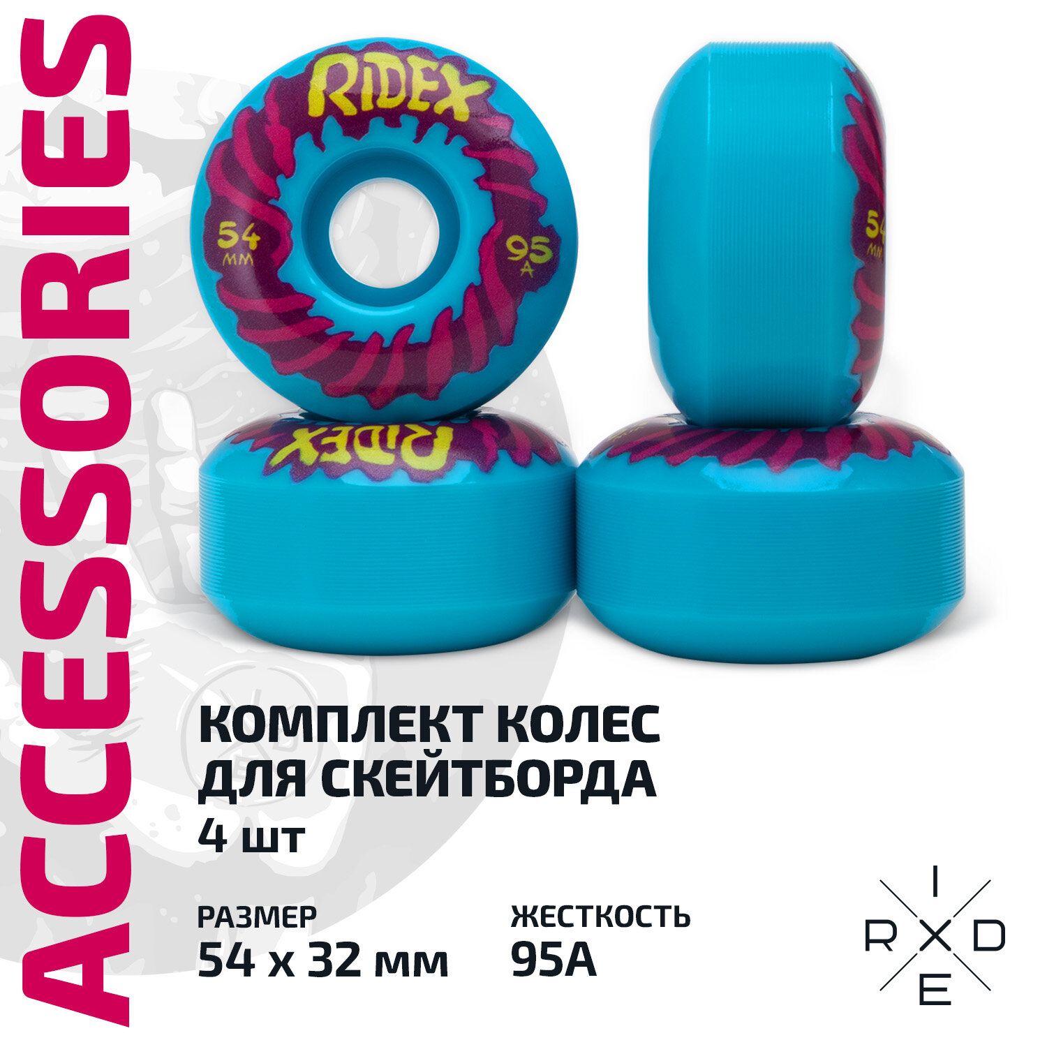 Комплект колес для скейтборда RIDEX 54*32мм, 95A, голубой интересное: