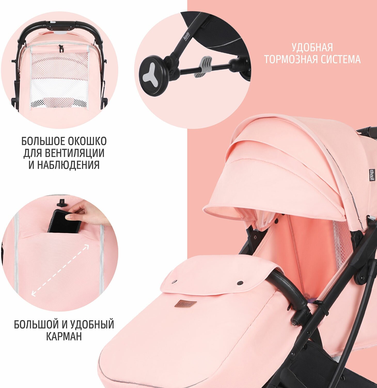 Прогулочная коляска Nuovita Fiato (Rosa, Nero / Розовый, черный) интересное: