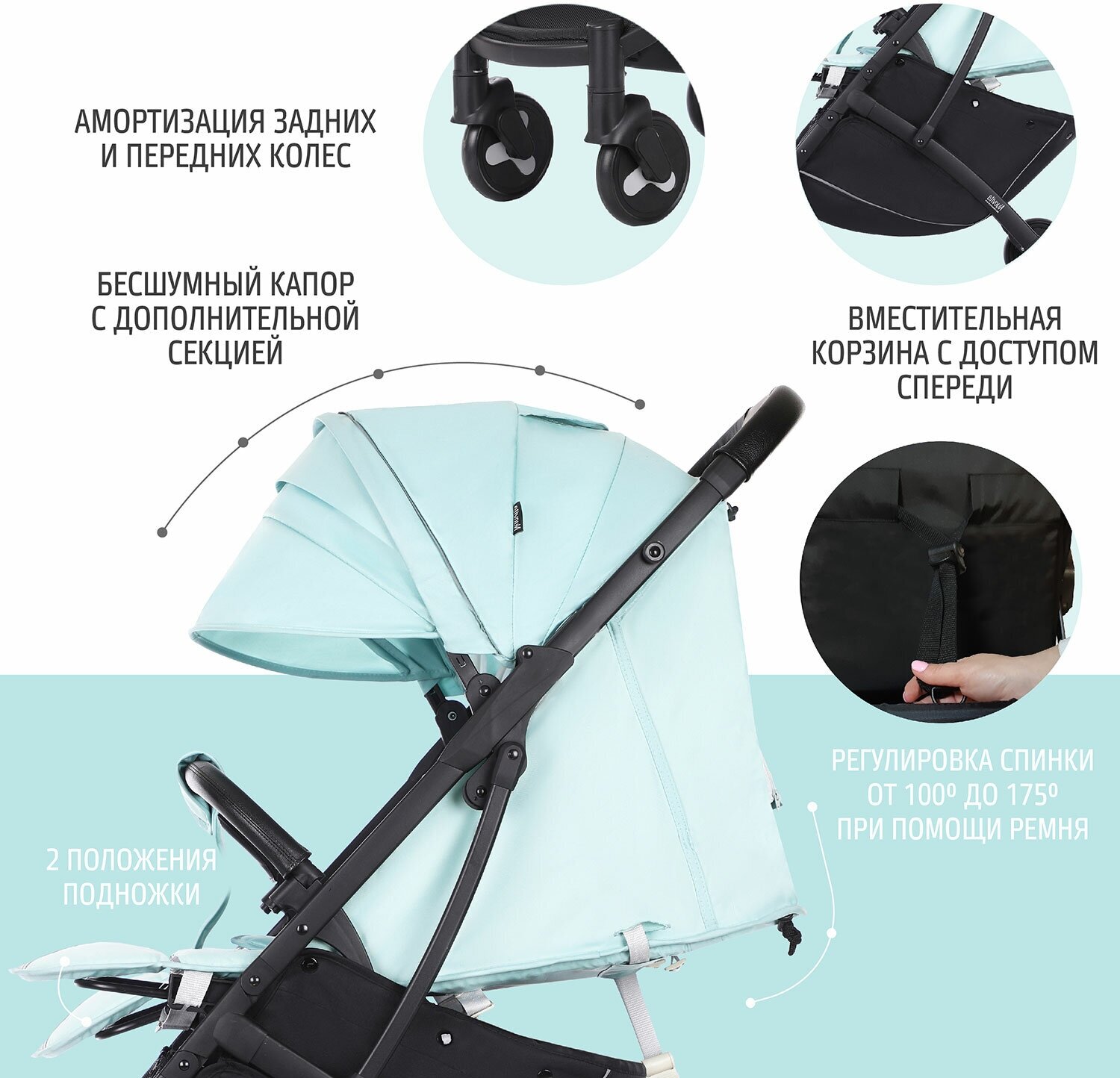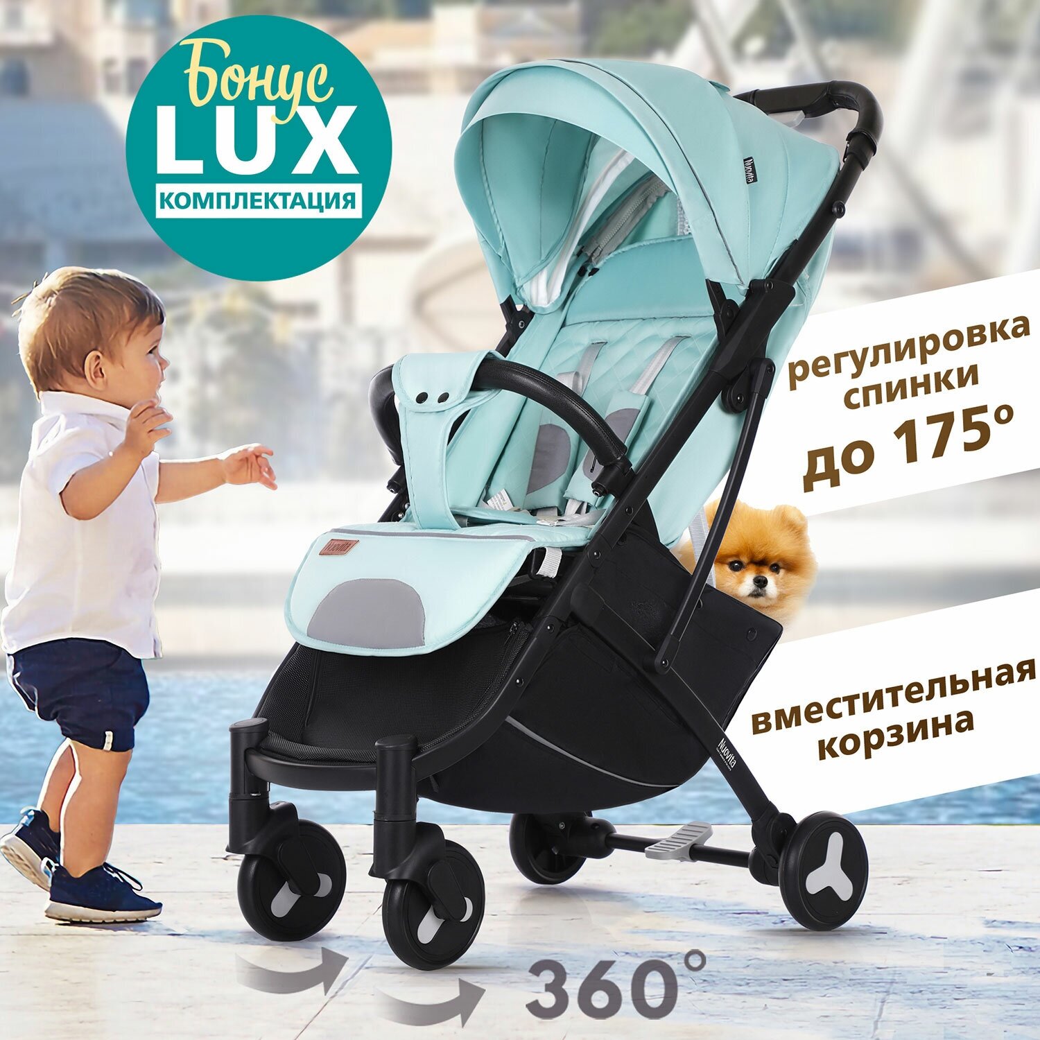 Прогулочная коляска Nuovita Fiato (Turchese, Nero / Бирюзовый, черный) интересное: