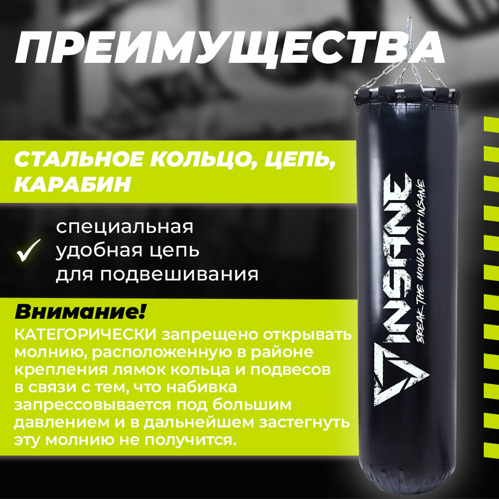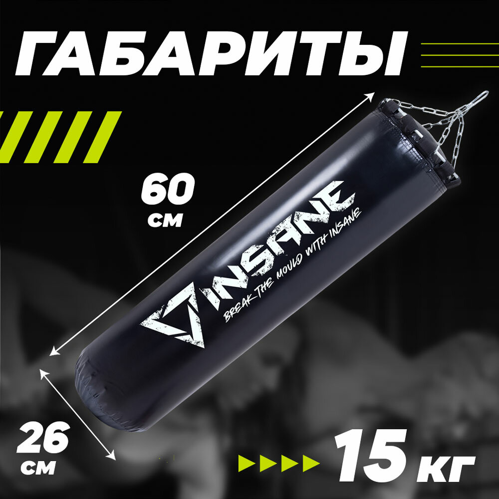 Мешок боксерский INSANE 60 см, 15 кг, тент, черный груша боксерская интересное: