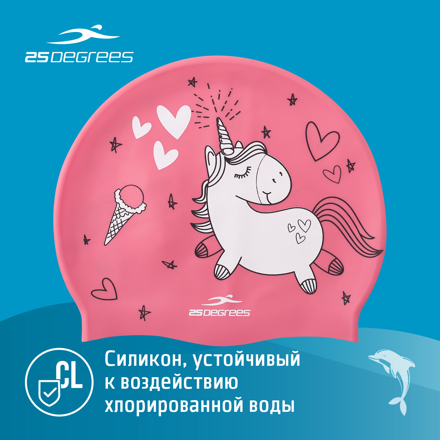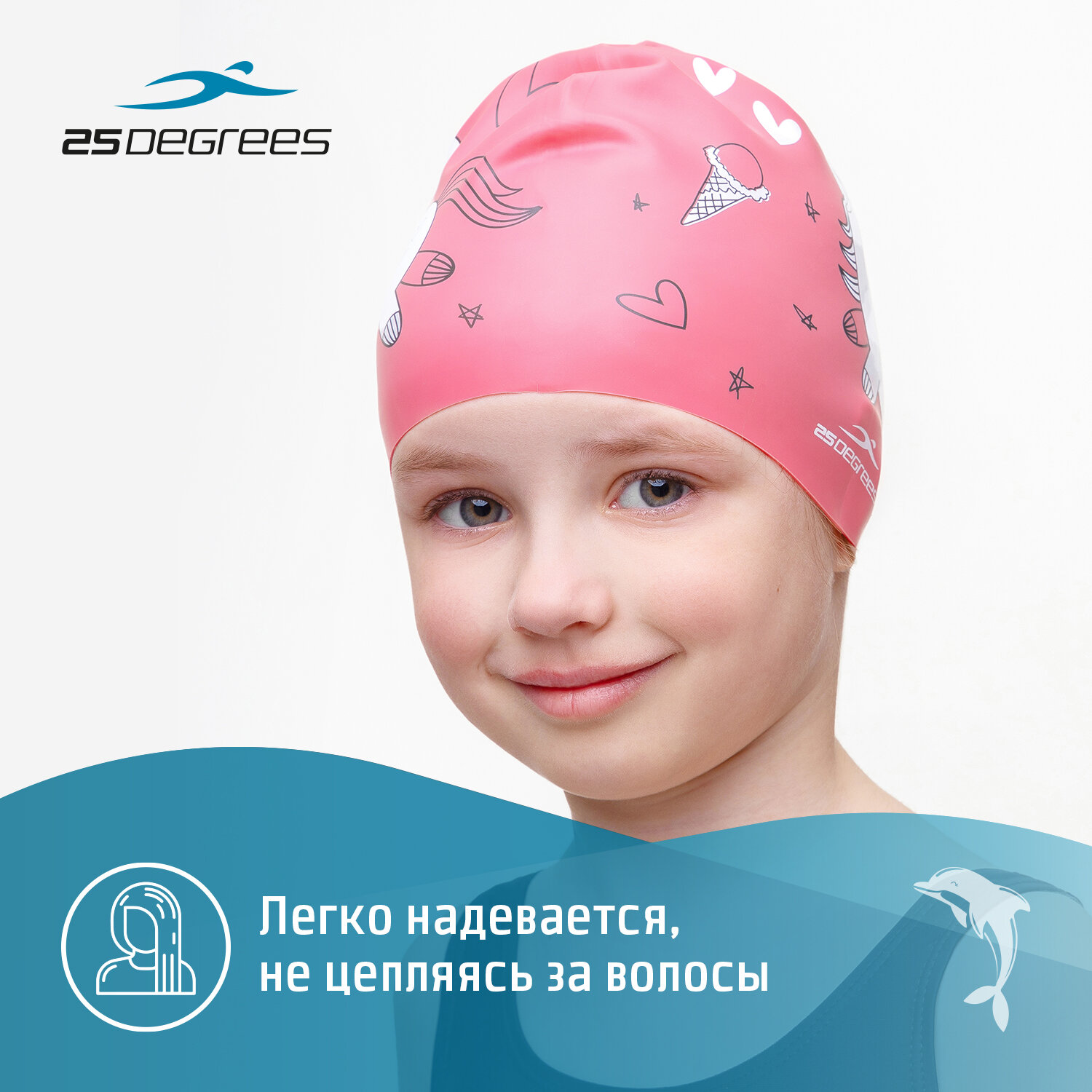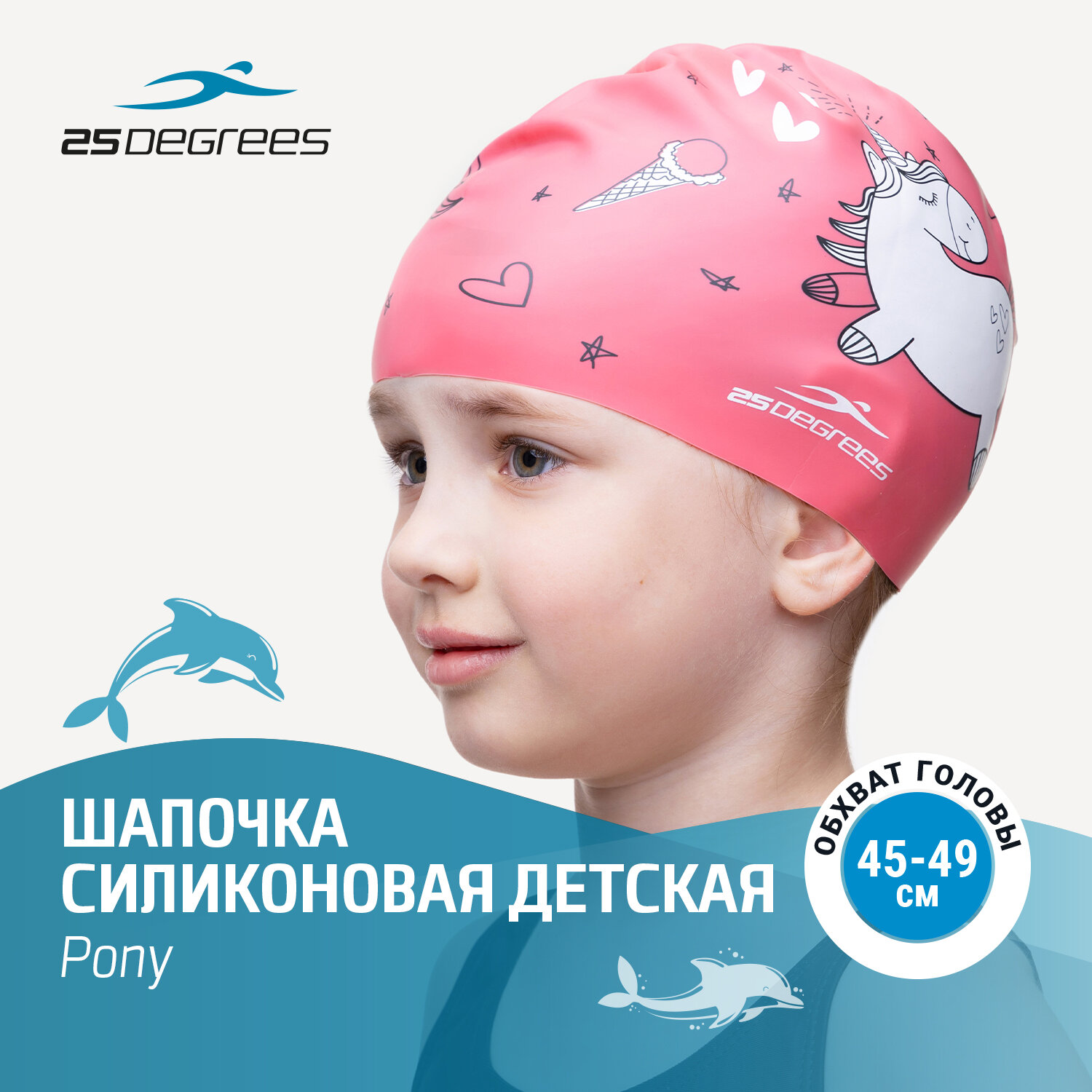 Шапочка для плавания 25degrees Pony Pink, силикон, детский интересное: