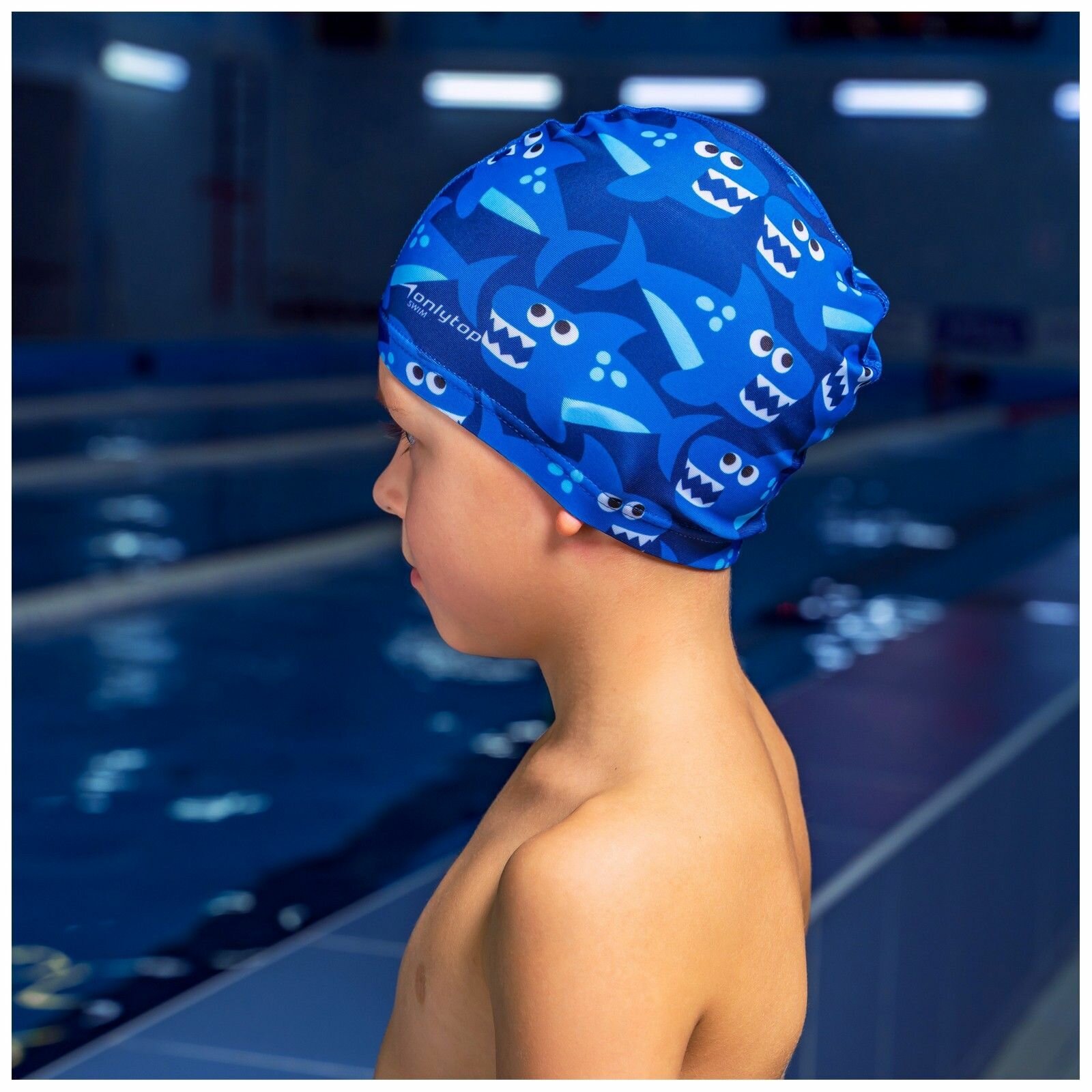 Купить Шапочка ONLYTOP Swim «Акулы», для плавания, тканевая, обхват 46-52 см, цвет синий