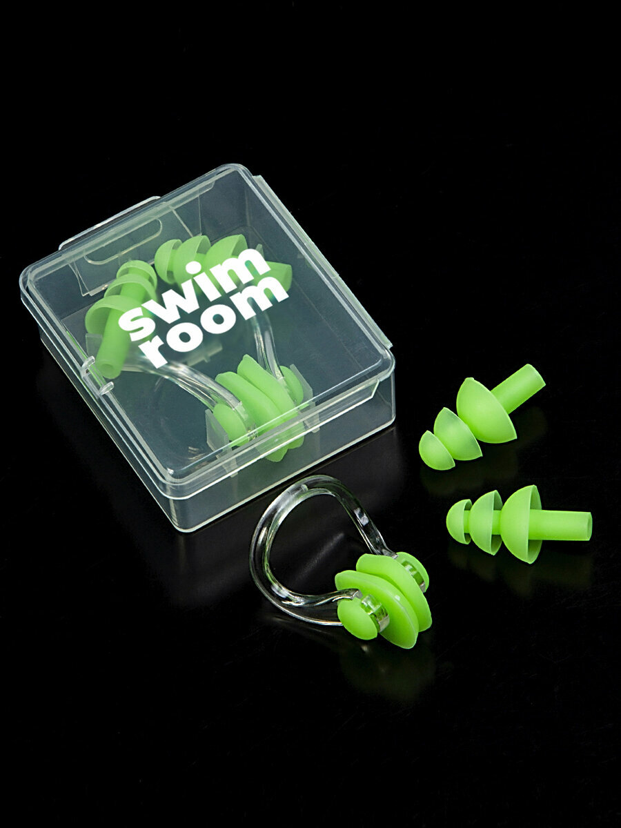 Купить Комплект беруши и зажим для носа для плавания и бассейна SwimRoom “Earplugs and nose clip”, цвет зелёный