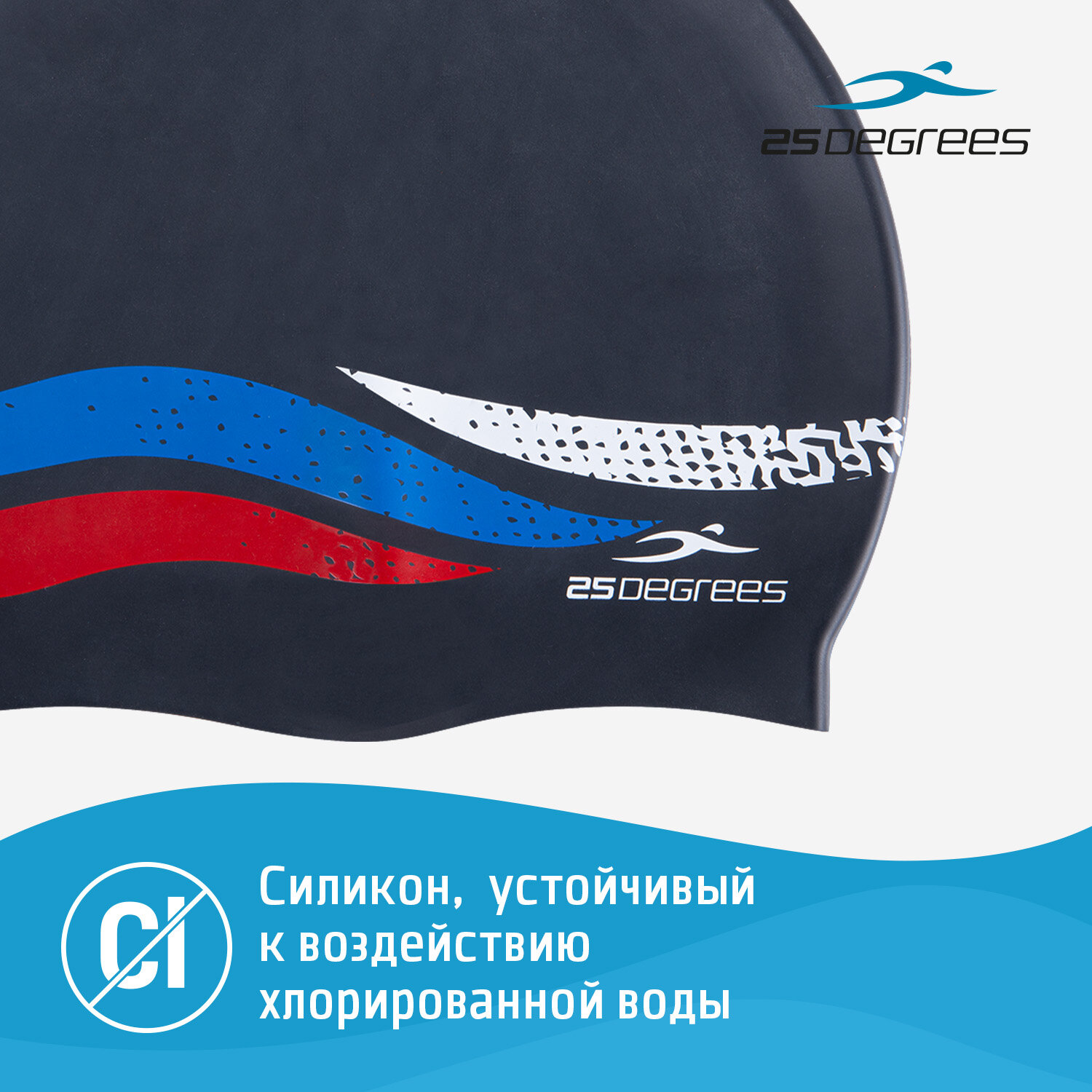 Купить Шапочка для плавания 25DEGREES Russia JR Black 25D21005J, силикон, подростковый