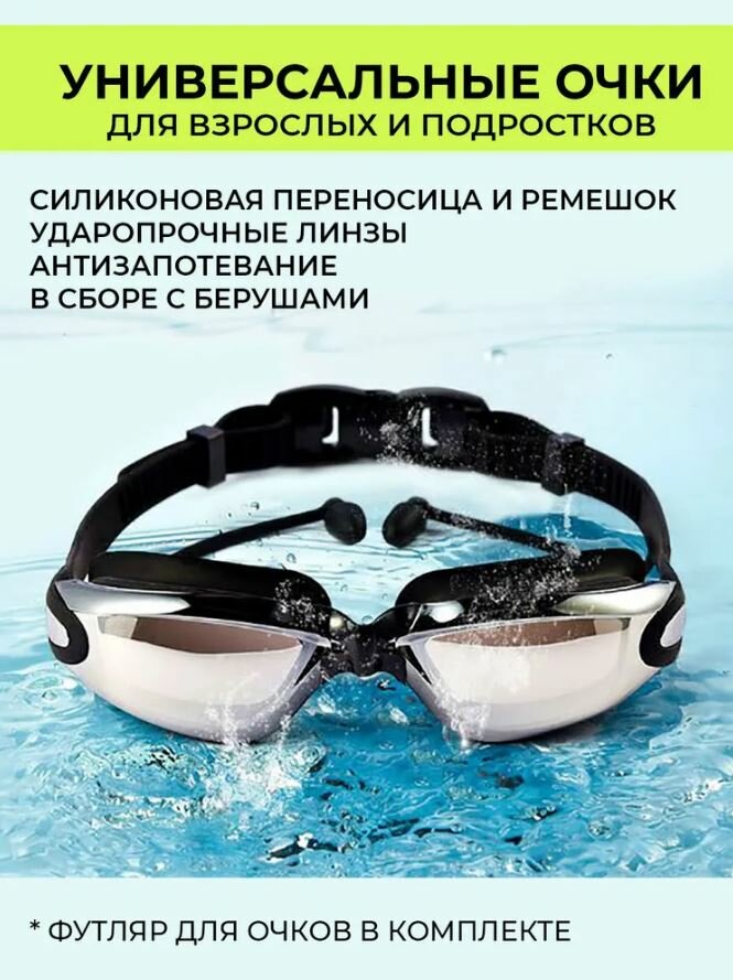 Очки для плавания, взрослые с берушами, цвет черный интересное: