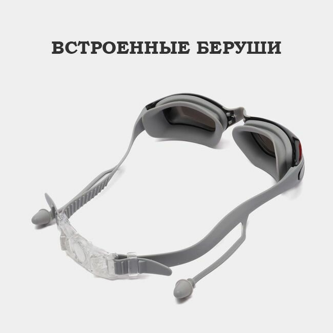 Очки для плавания, взрослые с берушами, цвет серый интересное: