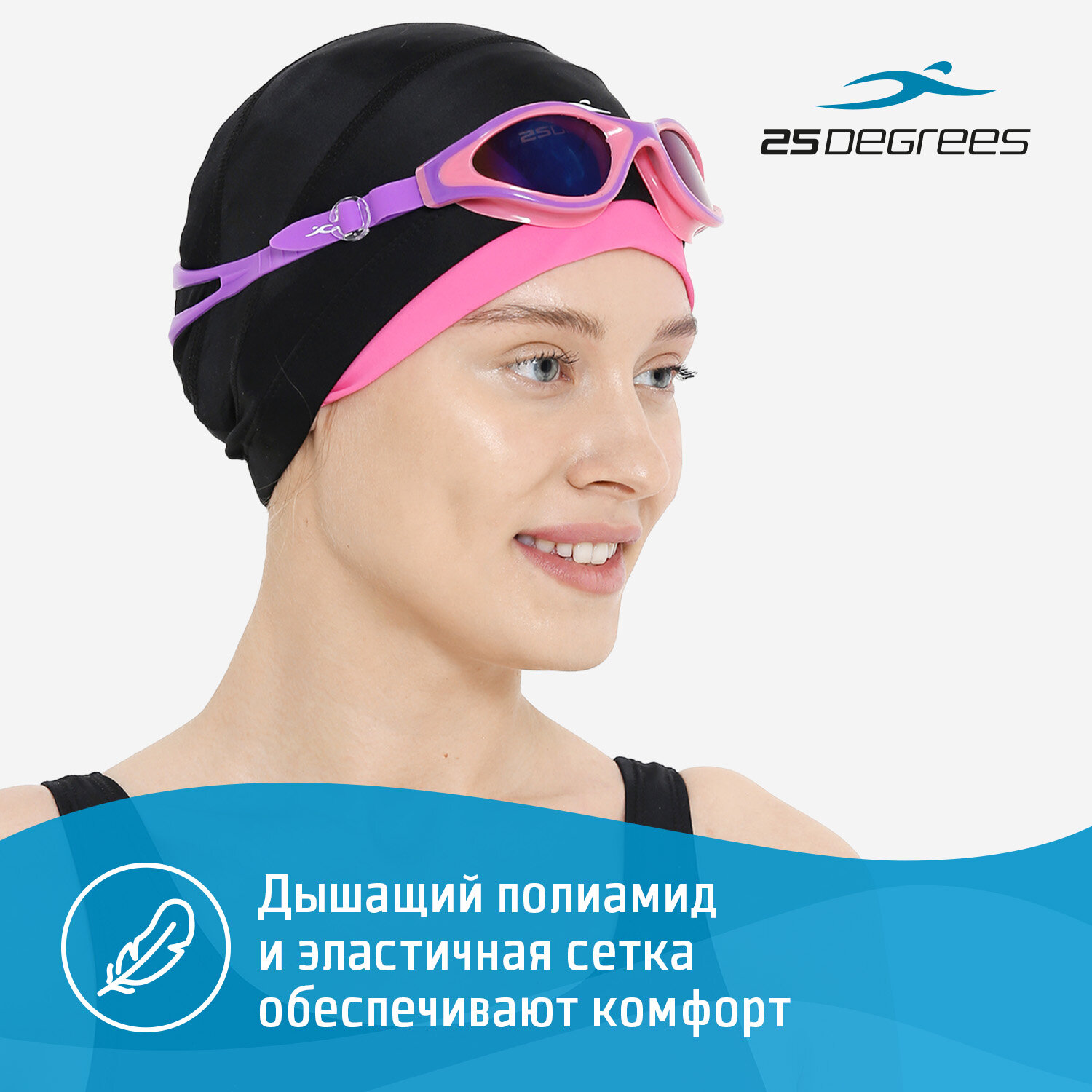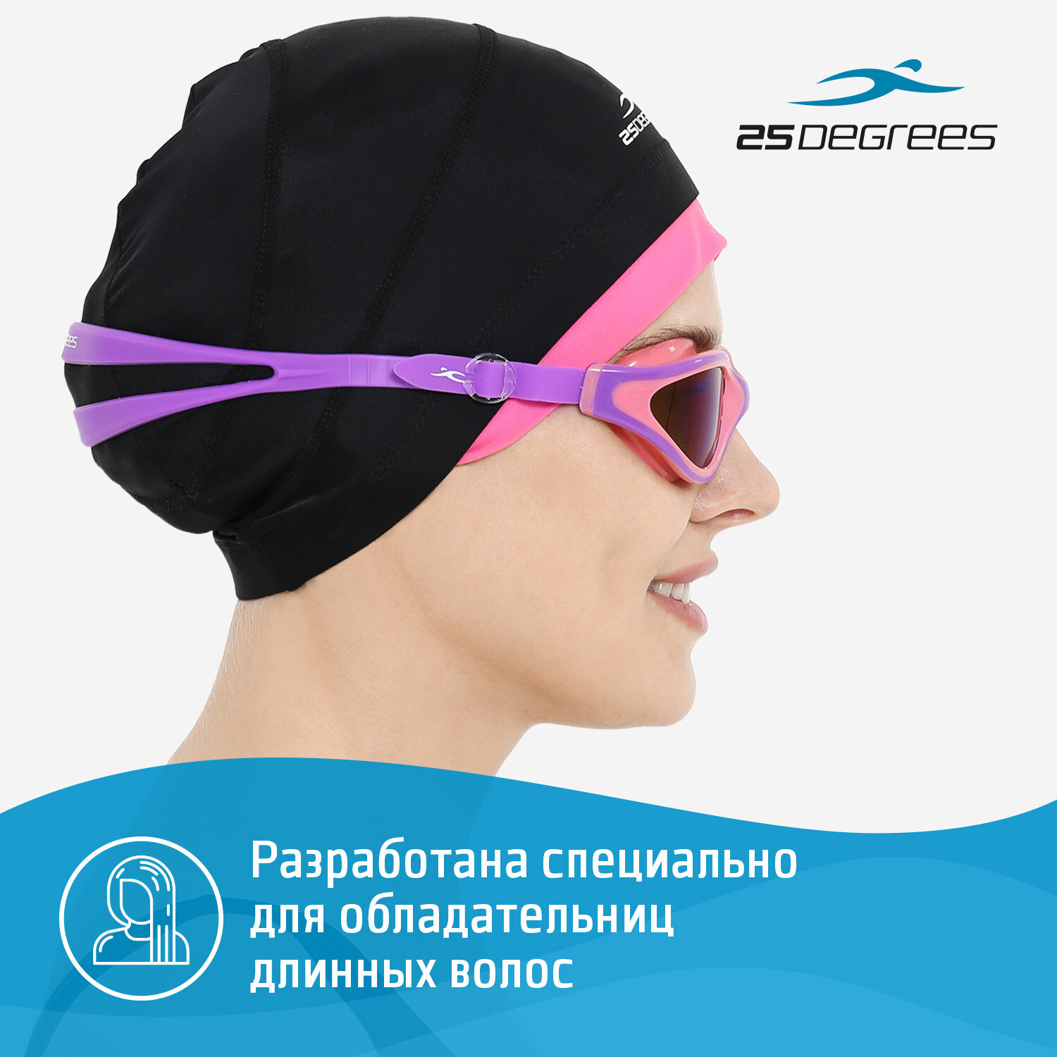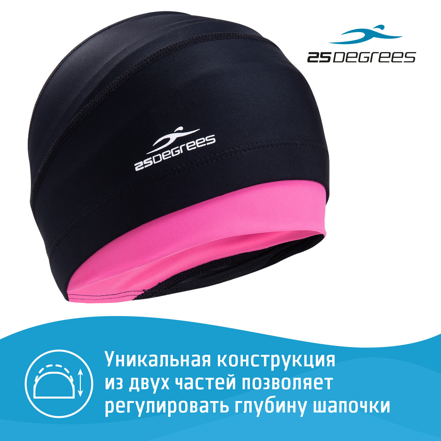 25Degrees Шапочка для плавания Duplo Black/Pink 25D21015A, полиамид, для длинных волос УТ-00019648