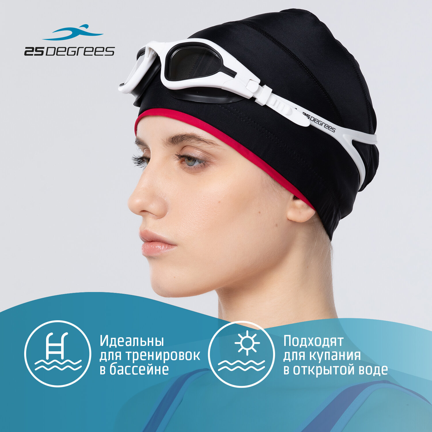 25Degrees Шапочка для плавания Duplo Black/Pink 25D21015A, полиамид, для длинных волос УТ-00019648