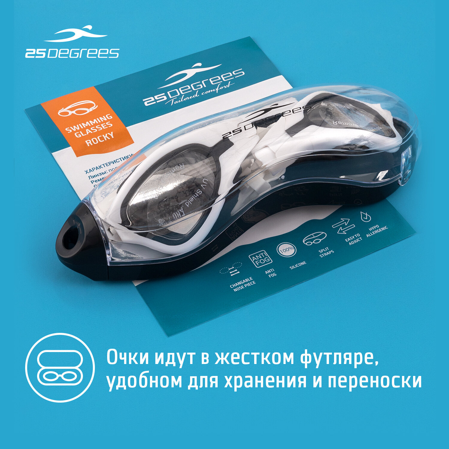 Ниже Вы можете прочитать отзывы на Очки для плавания 25DEGREES Rocky White футляр в комплекте, съёмная переносица, затемненные линзы, цвет белый/черный, ознакомится с подробными характеристиками, посмотреть интересные обзоры и фотографии на Очки для плавания 25DEGREES Rocky White футляр в комплекте, съёмная переносица, затемненные линзы, цвет белый/черный.