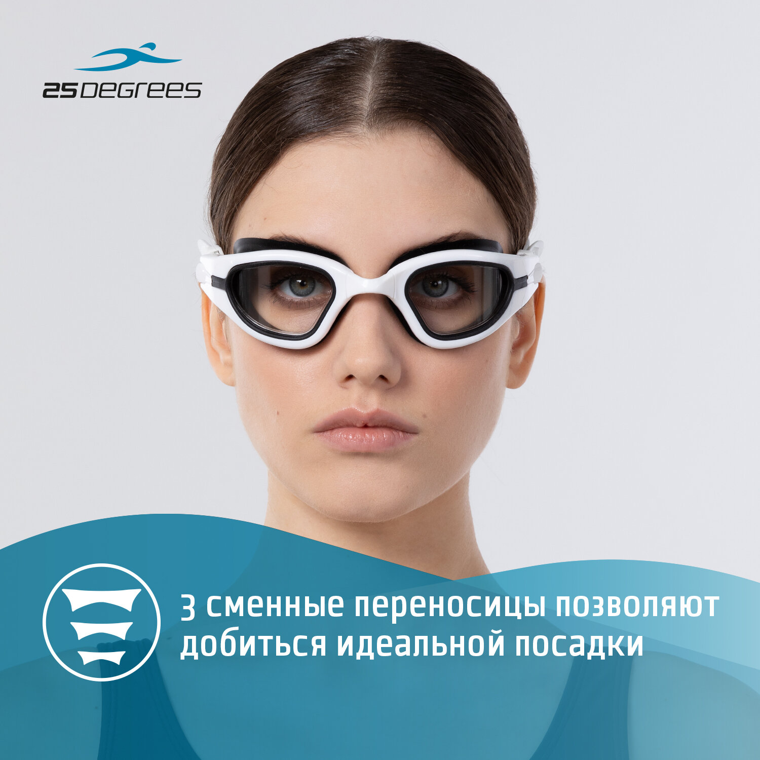 Купить Очки для плавания 25DEGREES Rocky White футляр в комплекте, съёмная переносица, затемненные линзы, цвет белый/черный