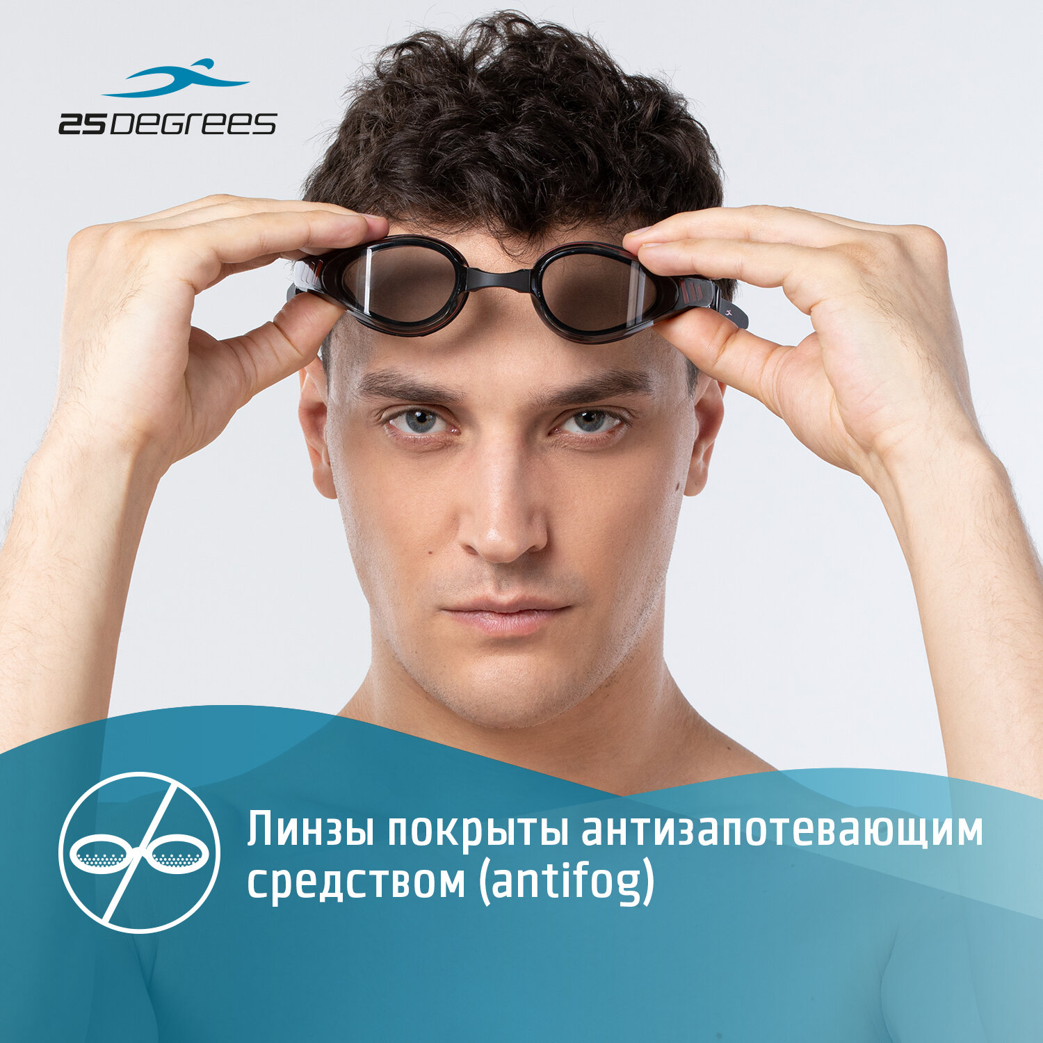 Очки для плавания 25DEGREES Perch Black/Grey футляр в комплекте, съёмная переносица, затеменные линзы, цвет черный/серый