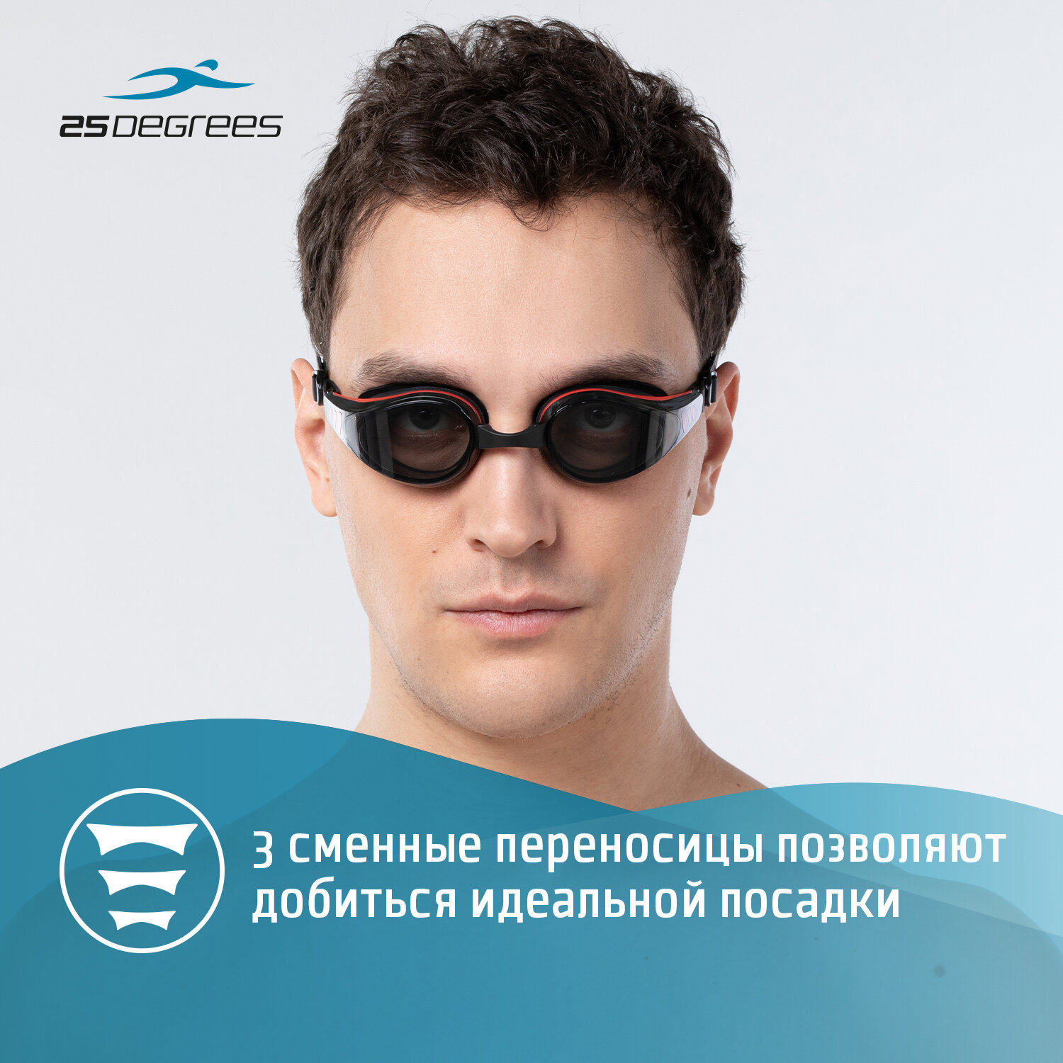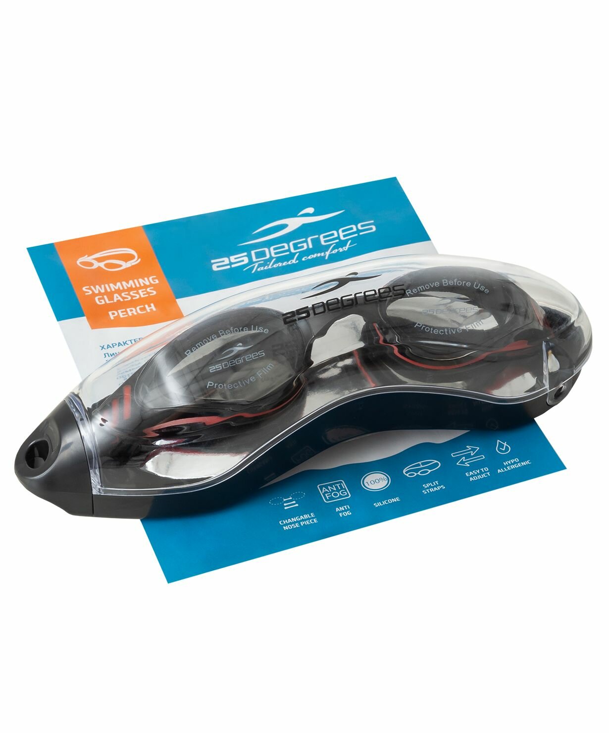 Купить Очки для плавания 25DEGREES Perch Black/Red футляр в комплекте, съёмная переносица, затемненные линзы, цвет черный/красный