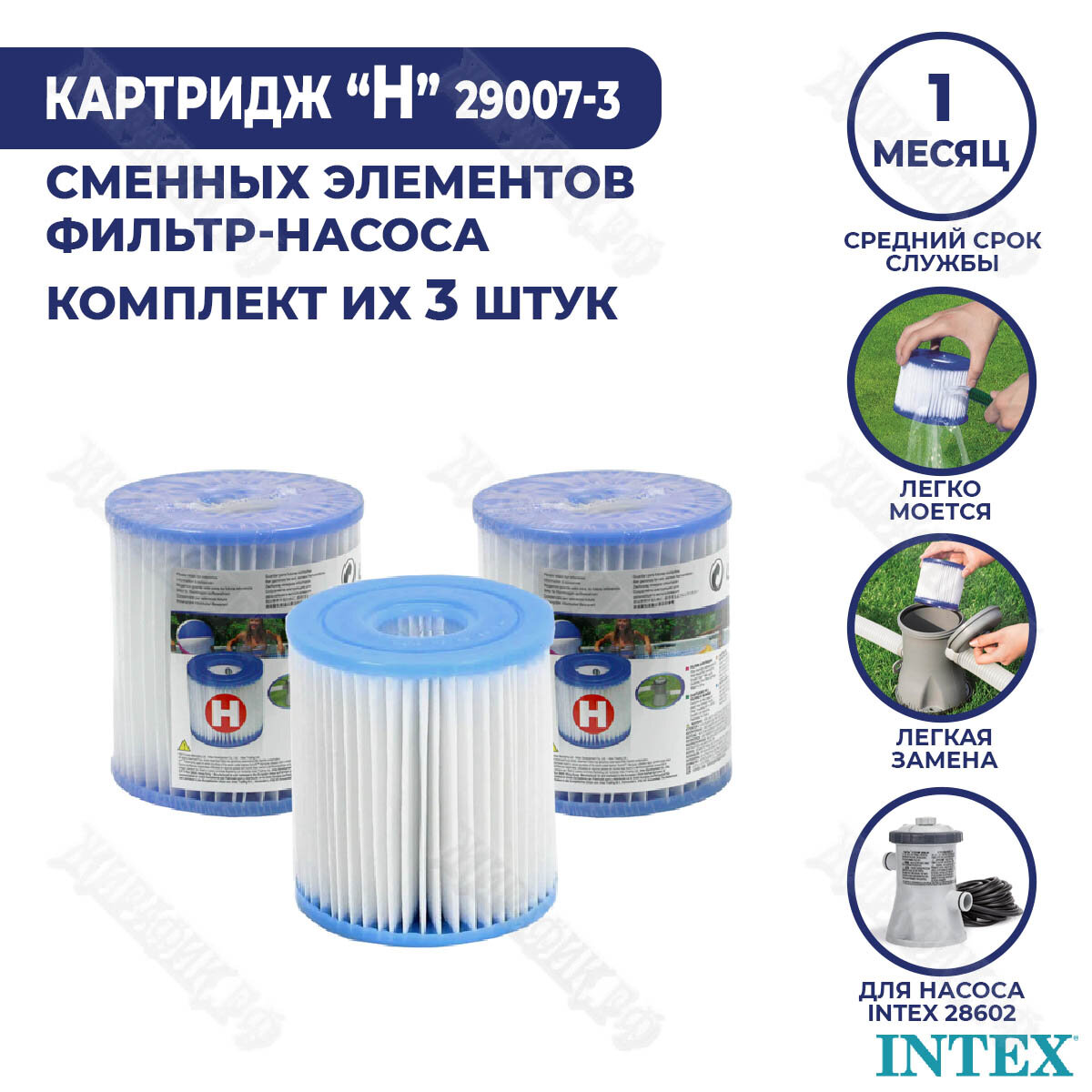 Сменные фильтр картриджи H Intex (к-кт 3 шт.) 29007-3 интересное: