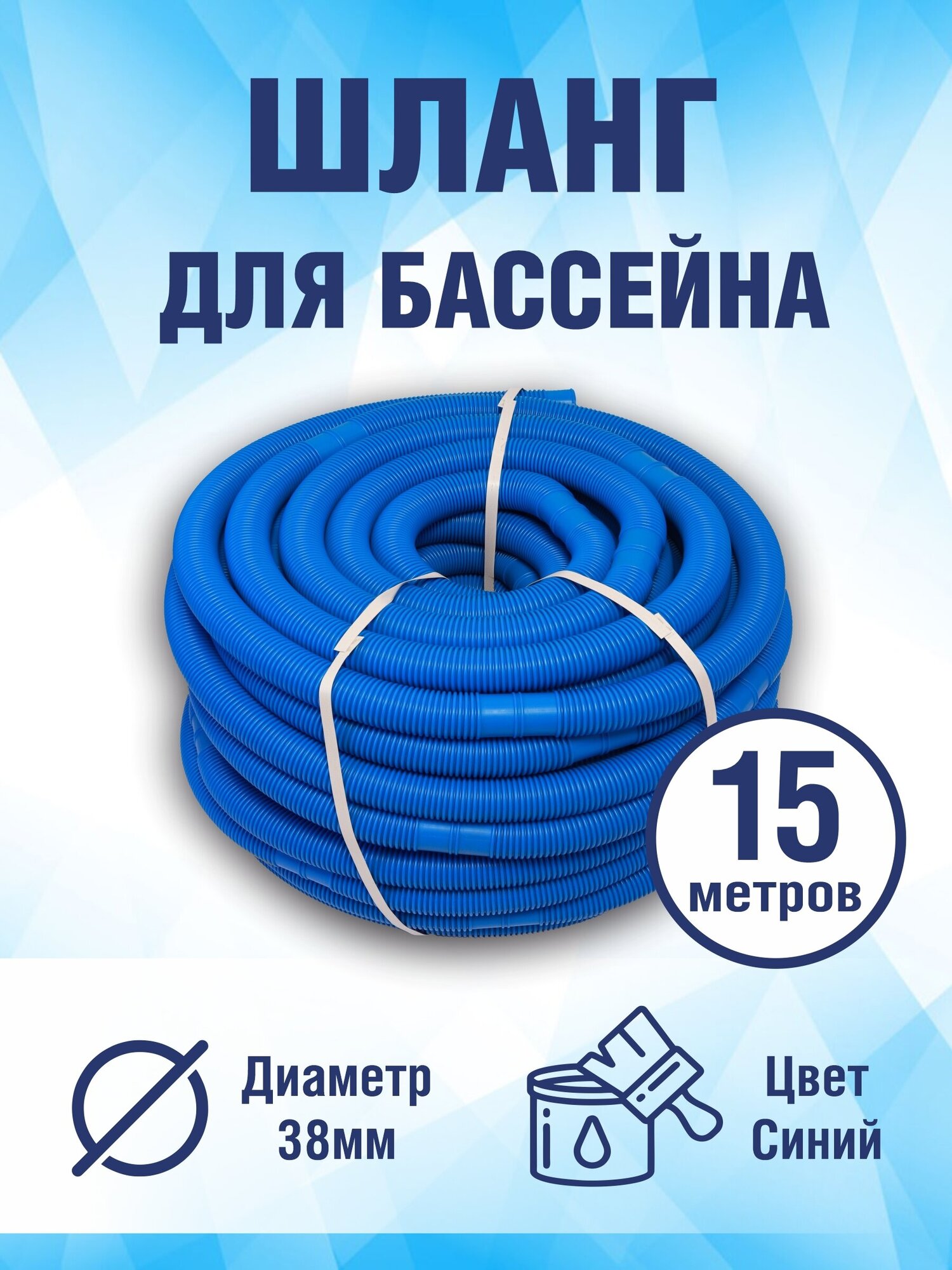Шланг гофрированный для бассейна 38 мм, длина 15 метров. Цвет голубой интересное: