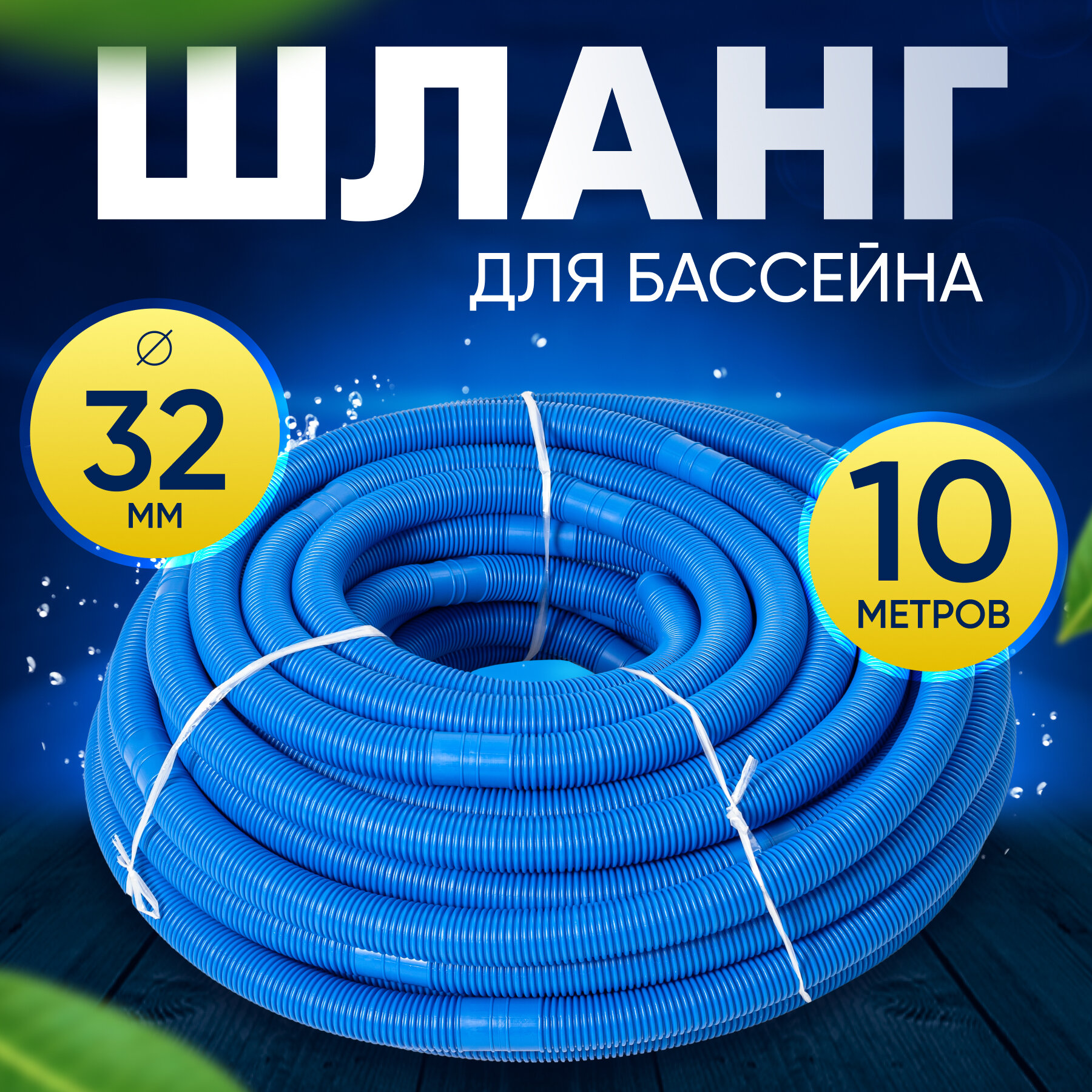 Шланг для бассейна D 32 мм, длина 9 м. Отрезной, гофрированный патрубок для подсоединения донного пылесоса, фильтра, нагревателя Vommy