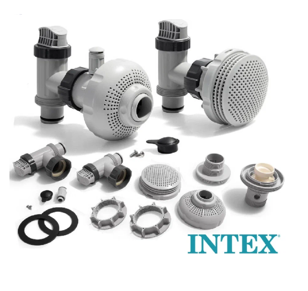 | Комплектация | Соединитель с функцией гидро-аэрации Intex 12355, впускная решетка сетчатая Intex 12198 и соединитель с гайкой и резиновой прокладкой Intex 11236, а также плунжерный клапан Intex 10747 2шт. |