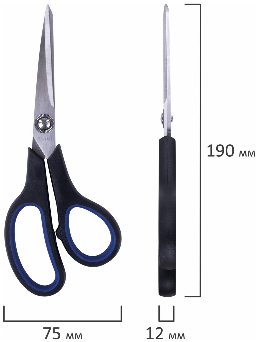 Ножницы BRAUBERG "Soft Grip", 190 мм, черно-синие, резиновые вставки, 3-х сторонняя заточка, 230762, 230762