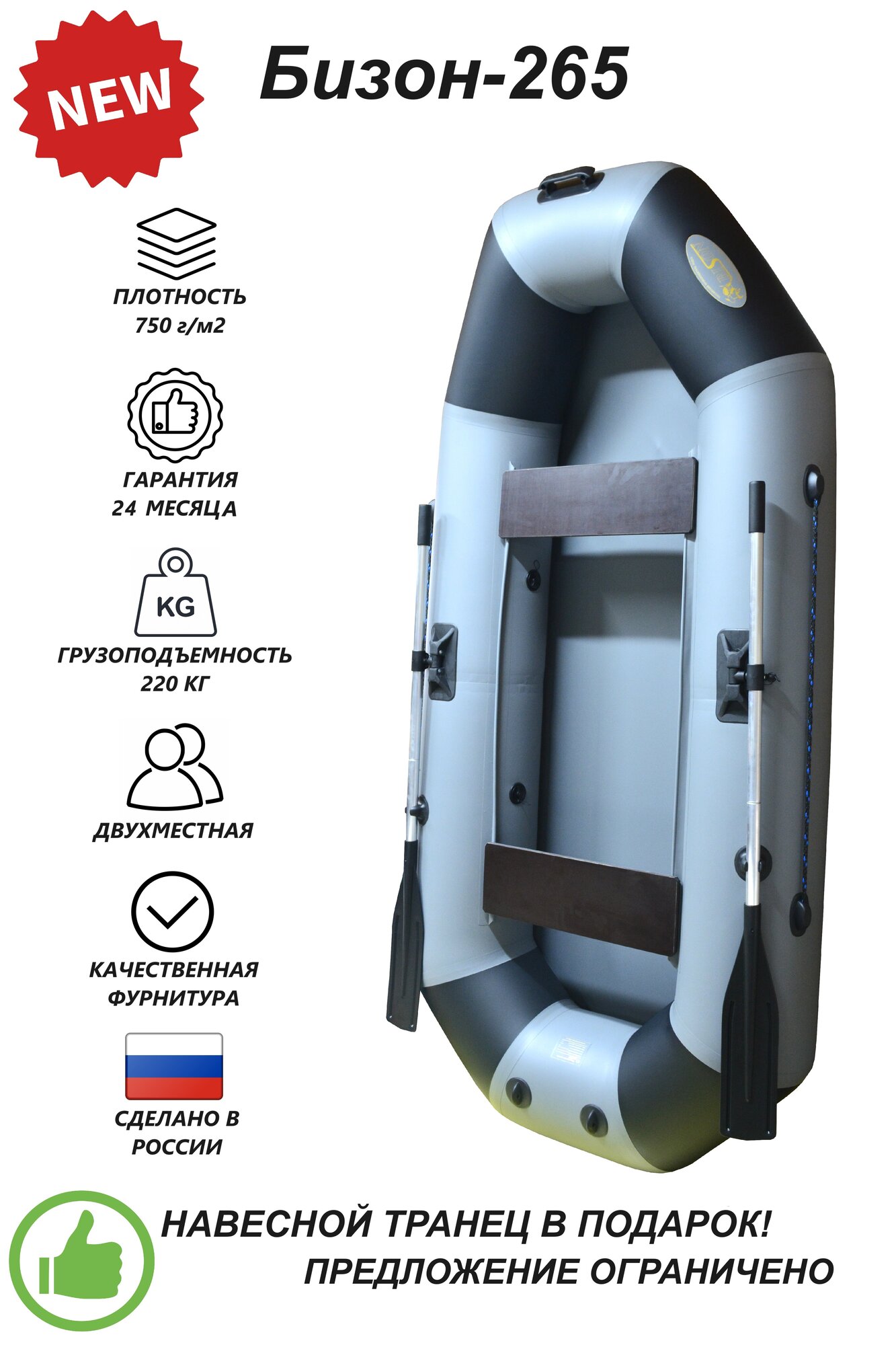 Надувная пвх лодка Бизон-265 (серый/черный) интересное: