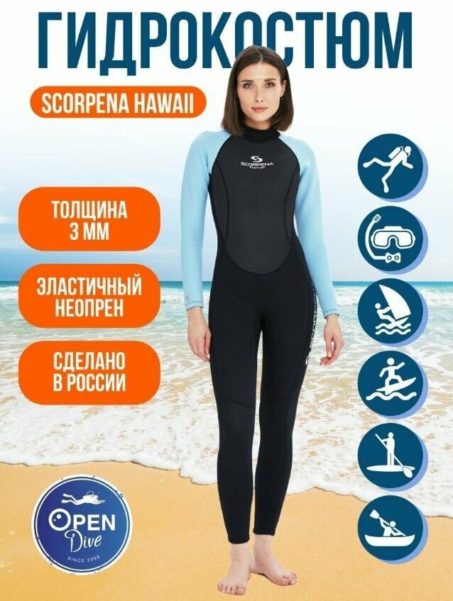 СохранитьГидрокостюм женский Scorpena Hawaii Blue 3 мм размер XS интересное: