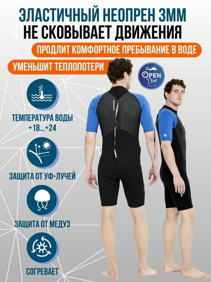 СохранитьГидрокостюм мужской Scorpena Hawaii Shorty Blue 3 мм размер S интересное: