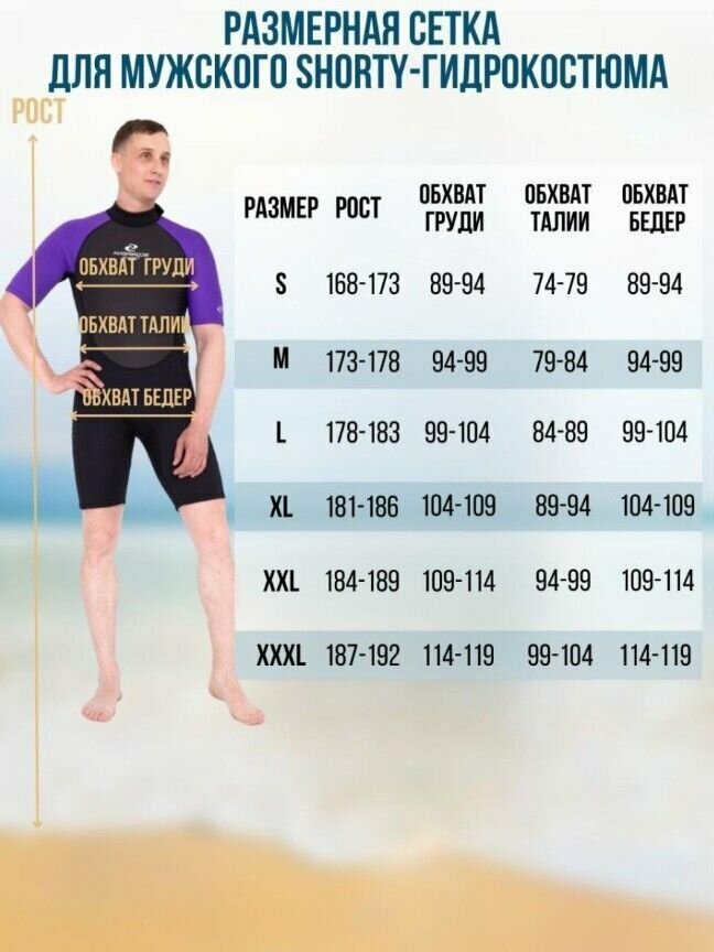 СохранитьГидрокостюм мужской Scorpena Hawaii Shorty фиолетовый 3 мм размер M интересное: