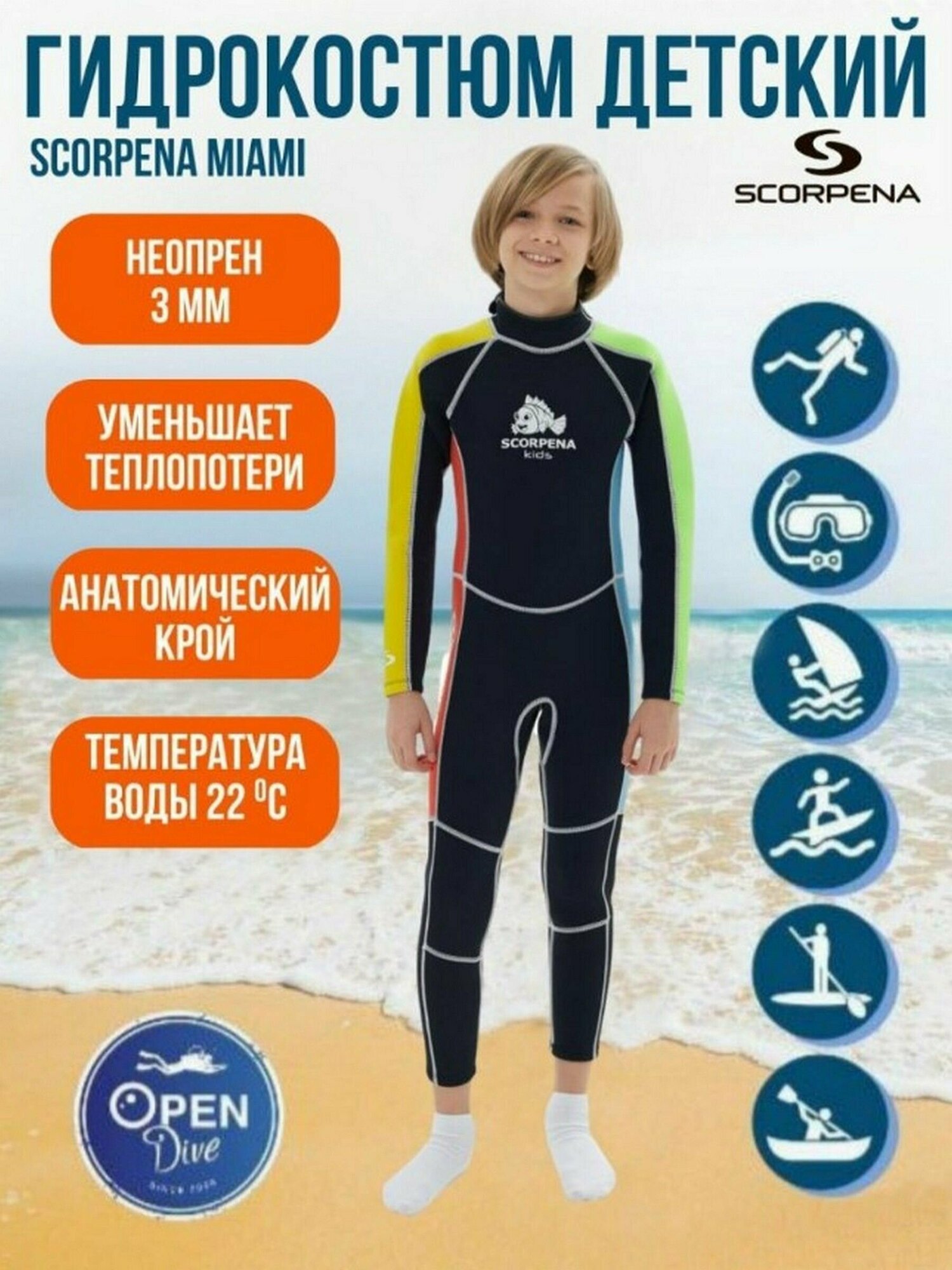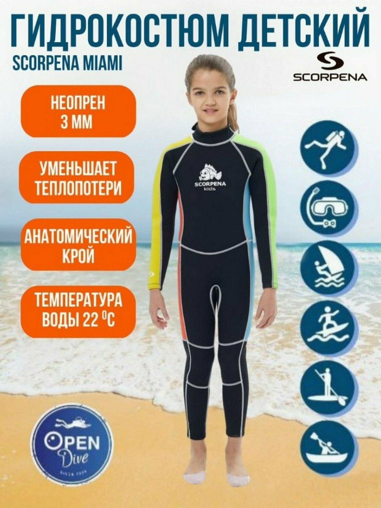 Гидрокостюм детский Scorpena Miami Kids 3 мм 2-4 года интересное: