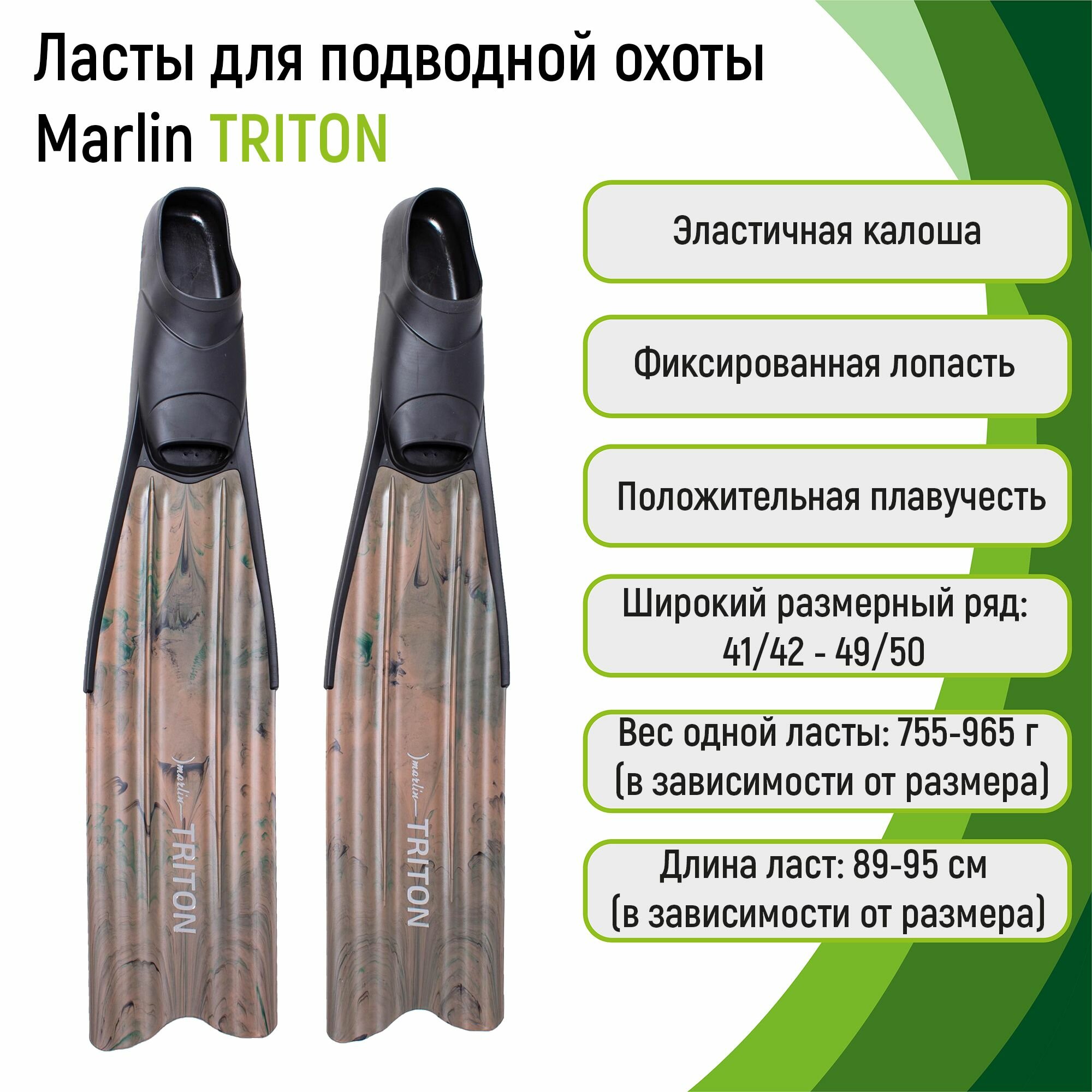 Ласты для подводной охоты Marlin TRITON green camo 43/44 (L)