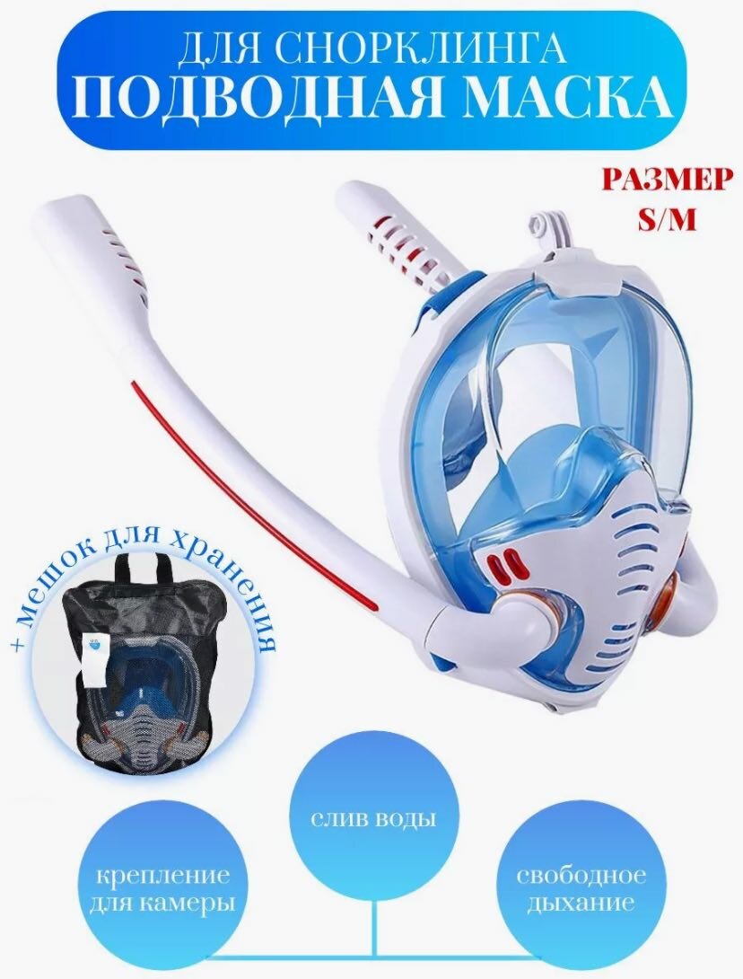 Маска PRO для плавания, снорклинга, бело-синего цвета, S/M интересное: