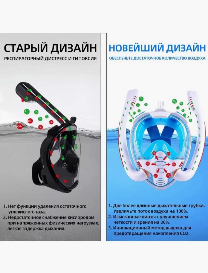 Маска PRO для плавания, снорклинга, бело-синего цвета, L/XL интересное:
