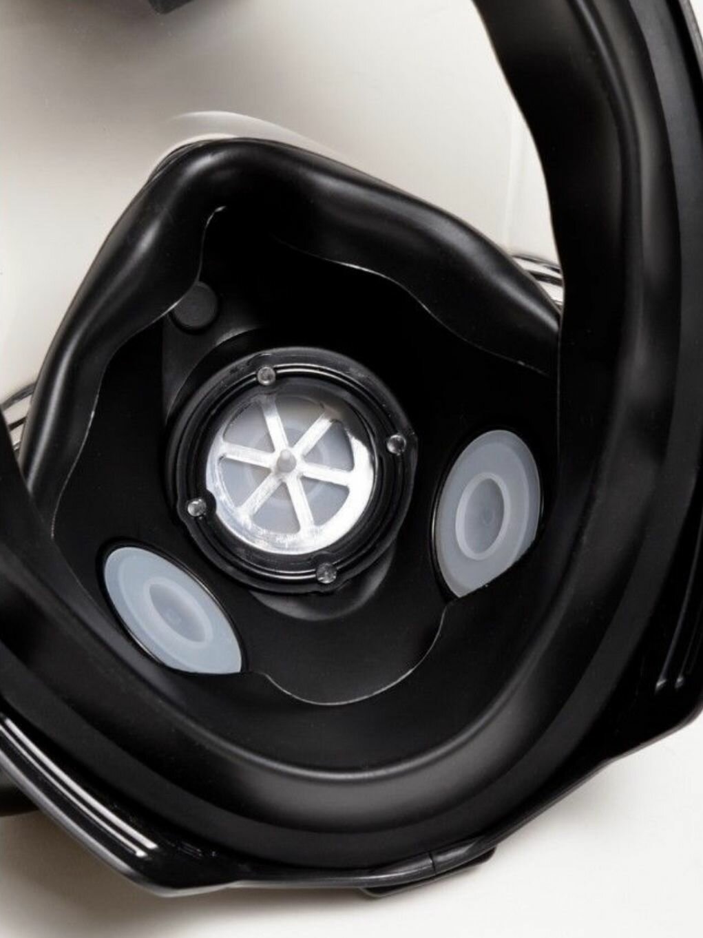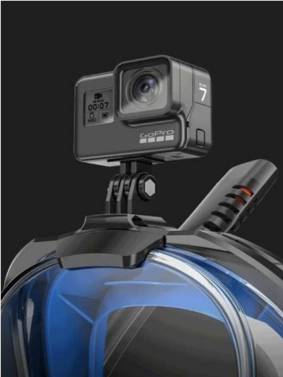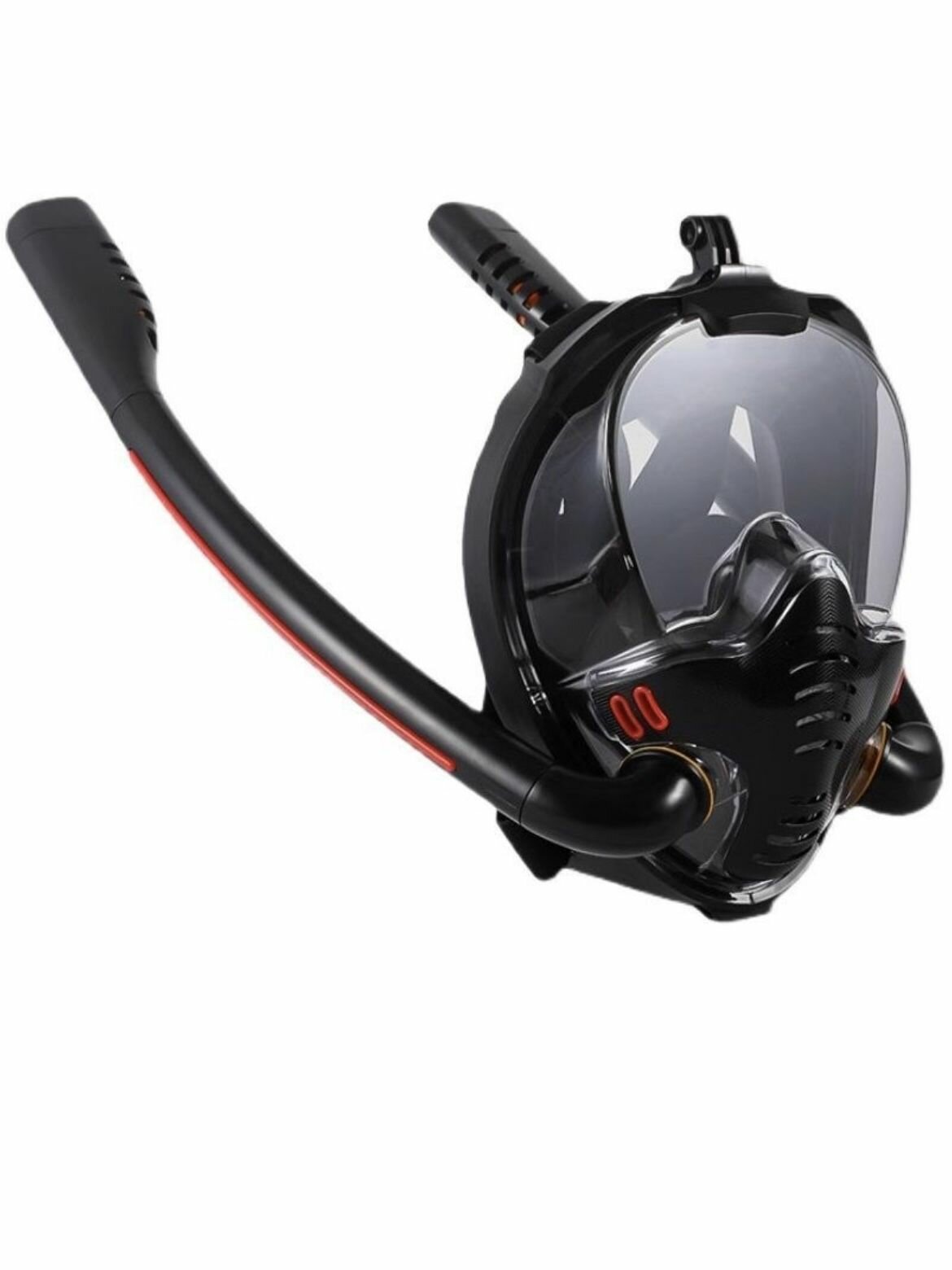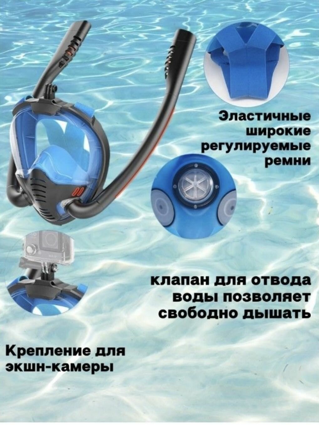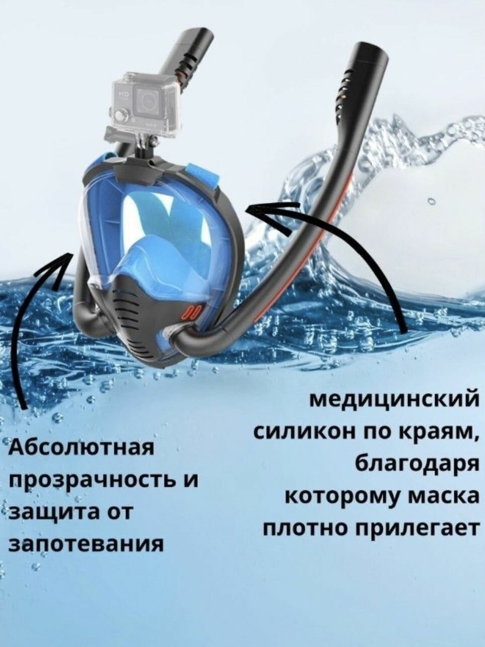 Полнолицевая маска для снорклинга 2 трубки и креплением для экшн камеры. черная. S/M интересное: