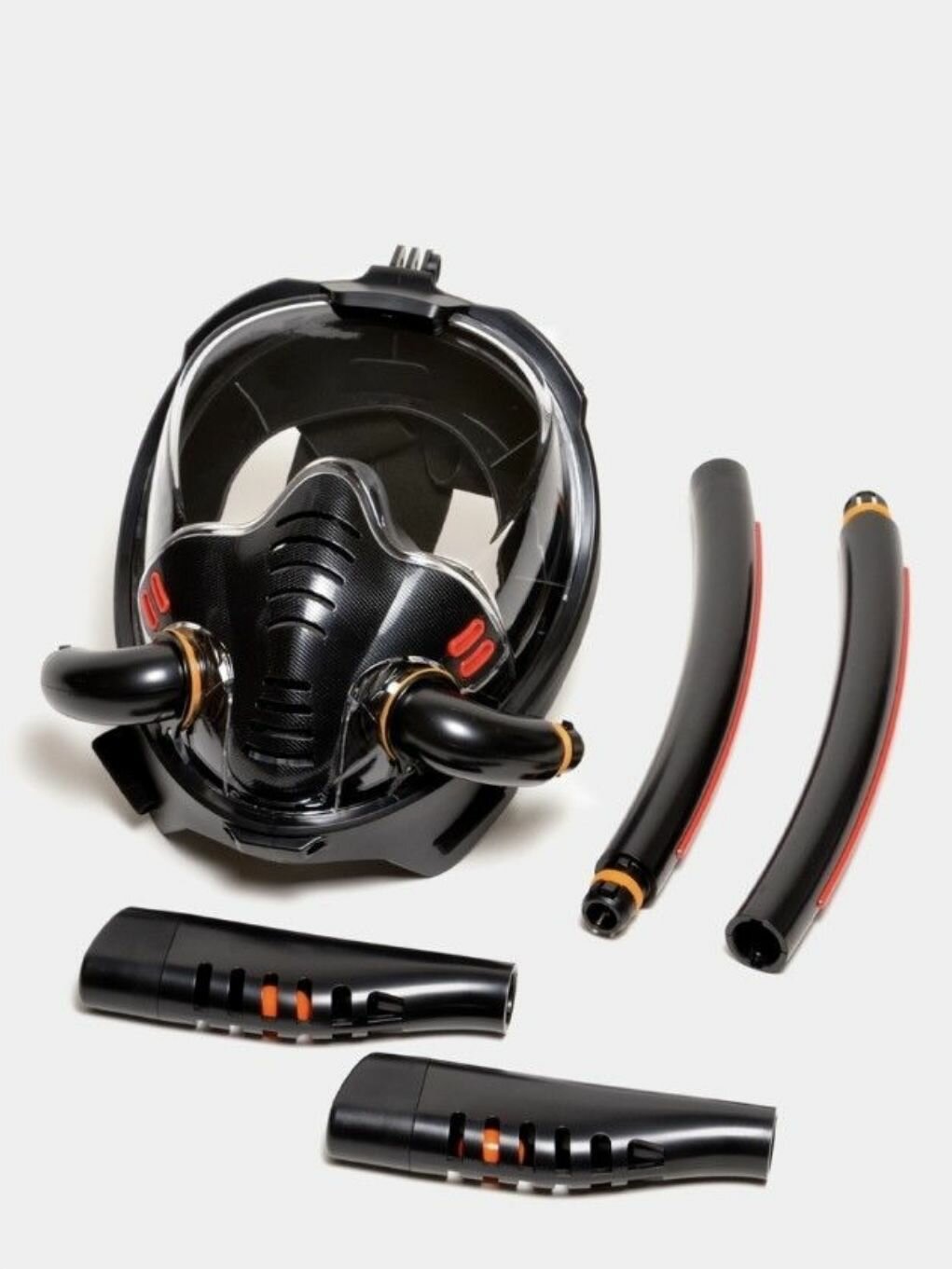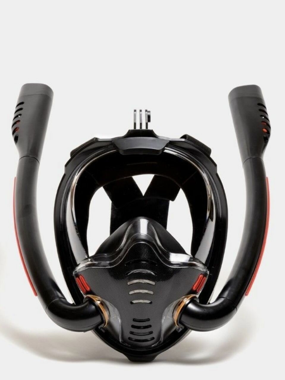 Купить Полнолицевая маска для снорклинга 2 трубки и креплением для экшн камеры. черная. S/M