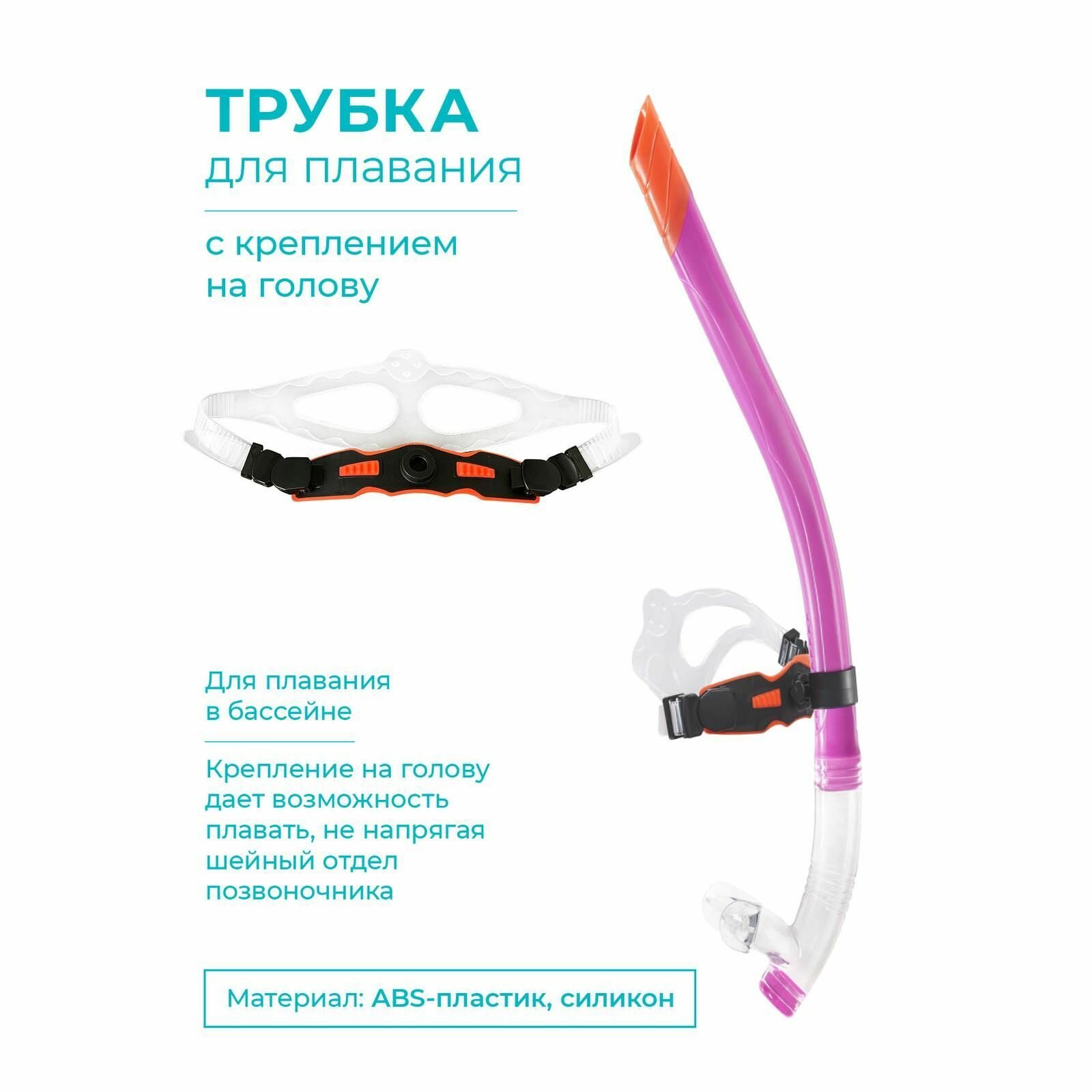 Купить Трубка для плавания INDIGO с креплением на голову, для бассейна, фиолетовый