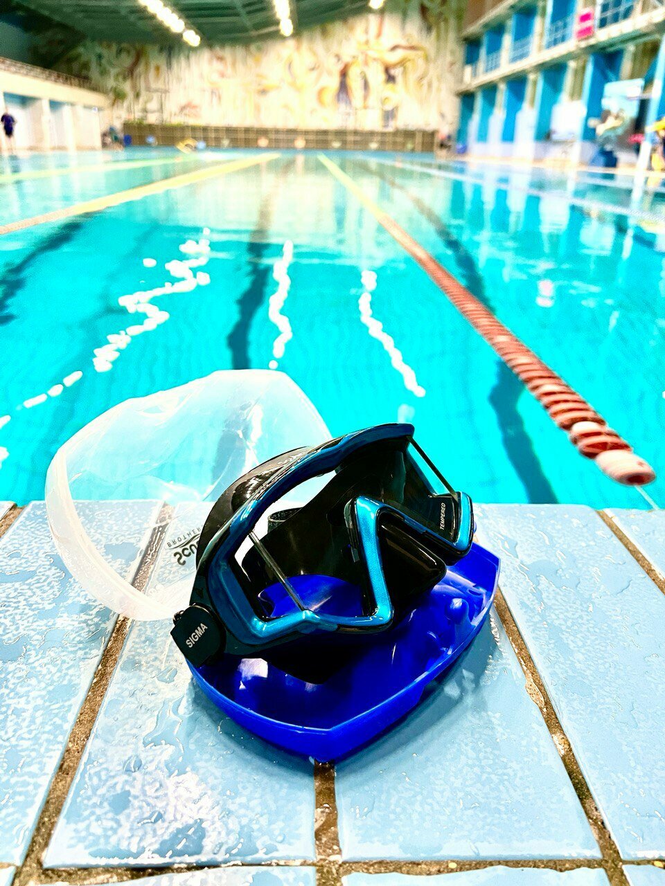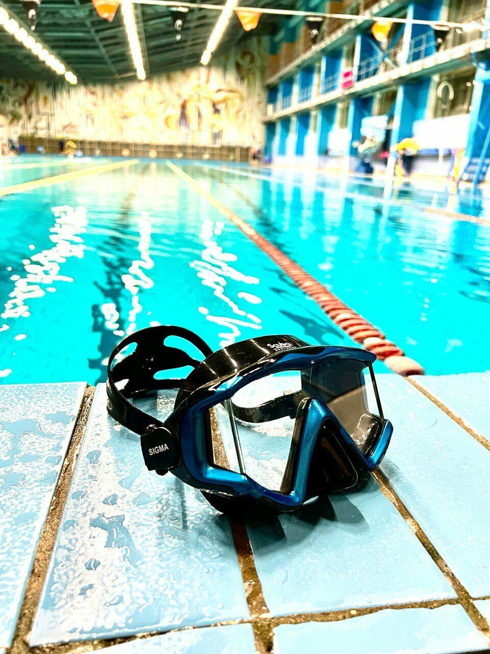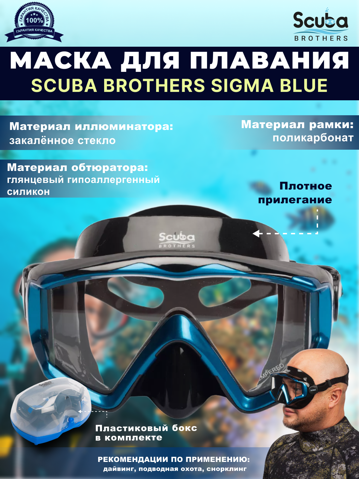 Маска для плавания SCUBA BROTHERS SIGMA BLUE, трехстекольная, синяя рамка/черный силикон интересное: