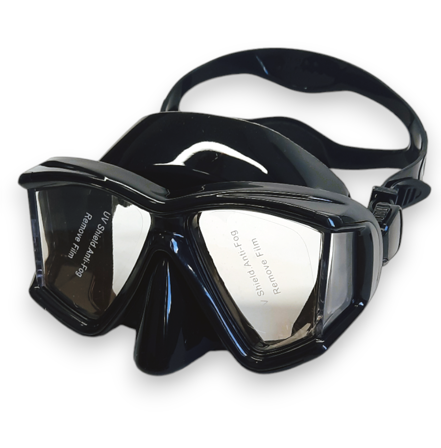 Очки для дайвинга "Новые", с линзами, силиконовые, черные, с синим покрытием