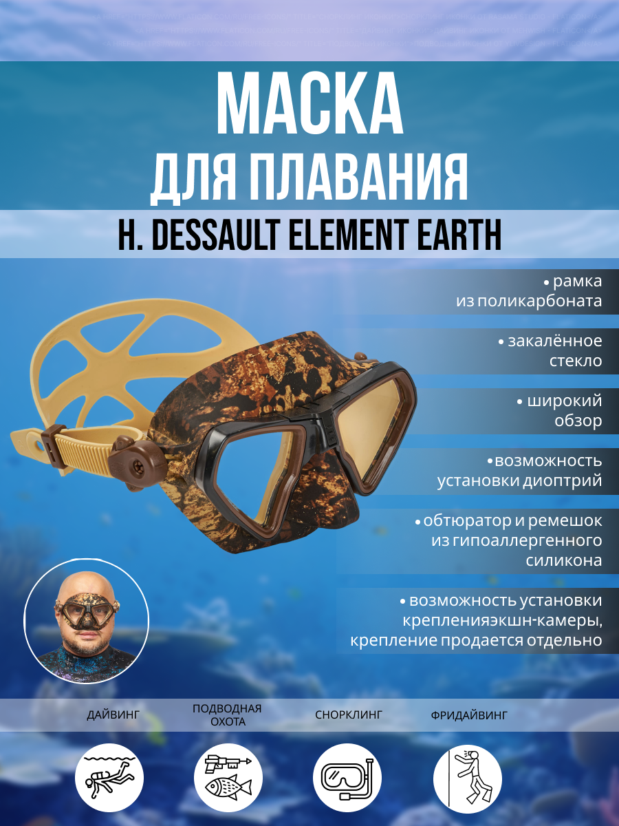 Маска для плавания H.DESSAULT ELEMENT EARTH, коричнево-черная интересное: