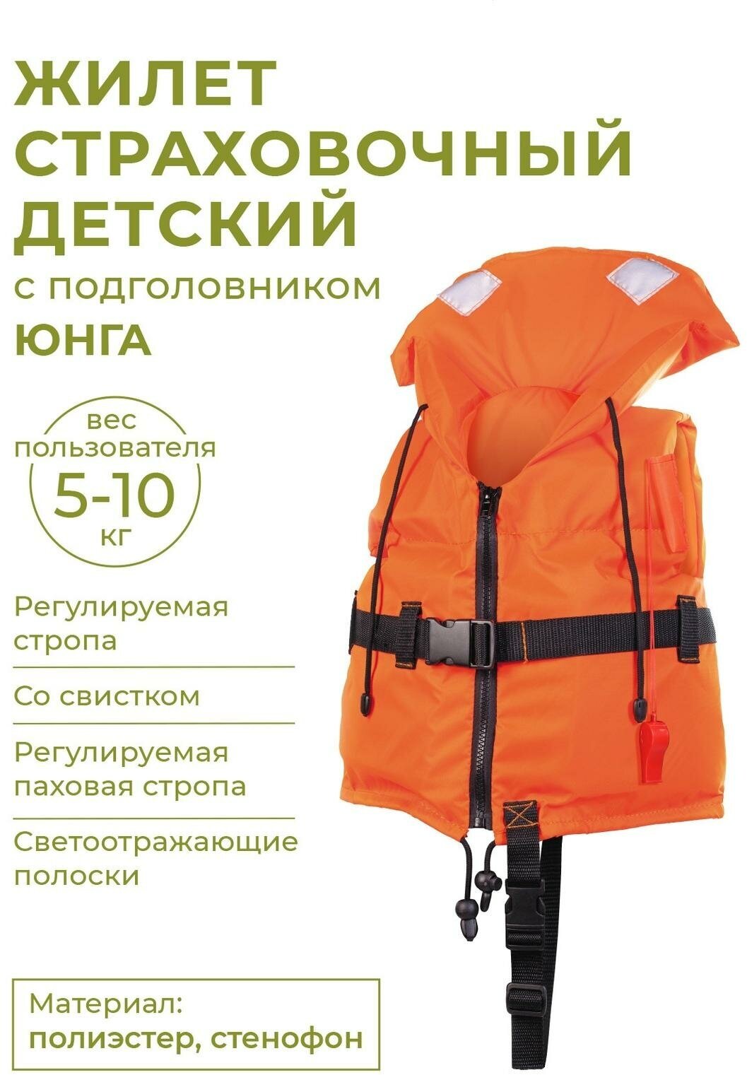 Жилет страховочный Юнга детский с подголовником 5-10 кг SM-034 Оранжевый 32-34 интересное: