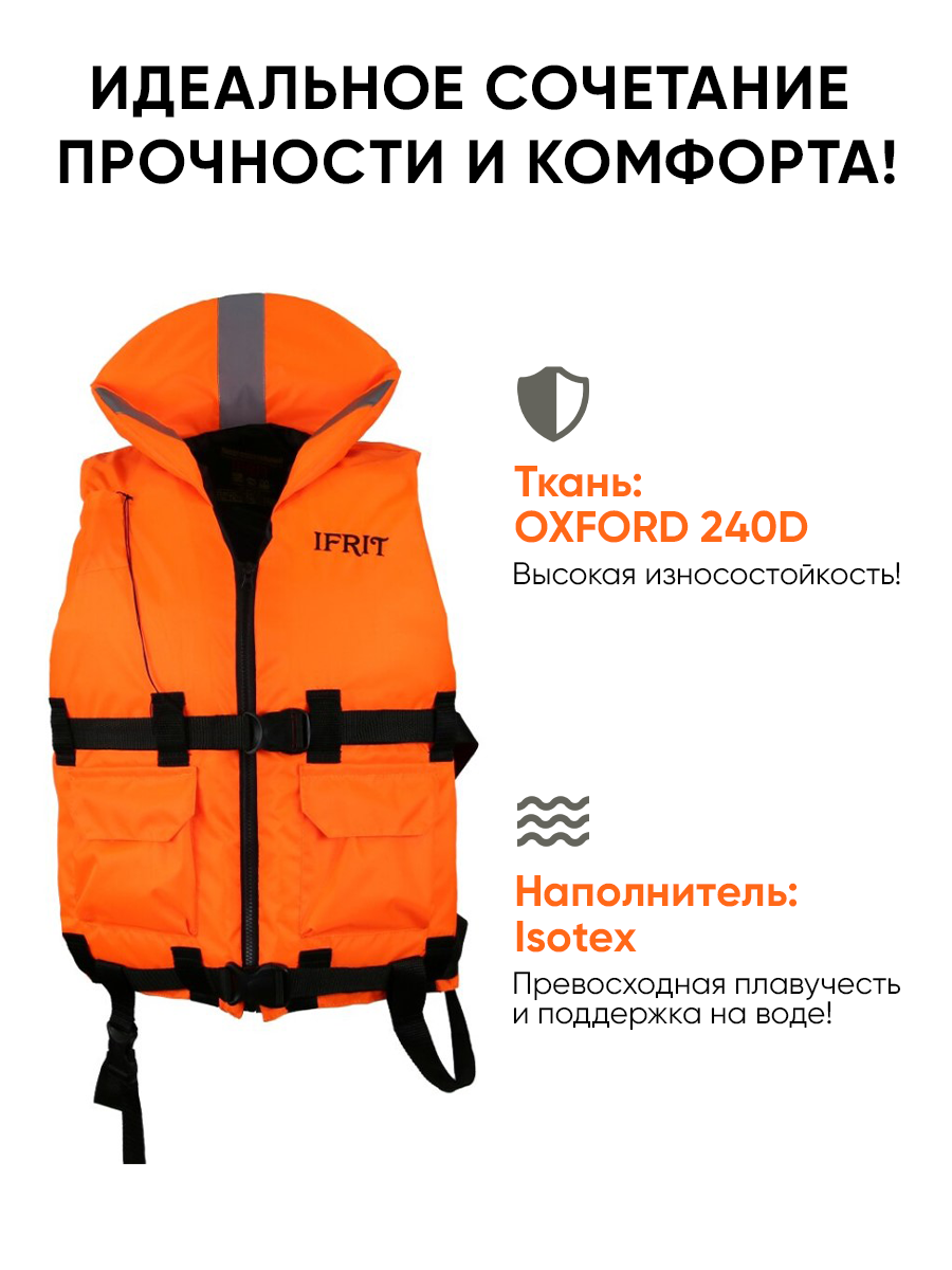 Спасательный жилет взрослый "IFRIT 70" оранжевый, 70 кг. Гимс