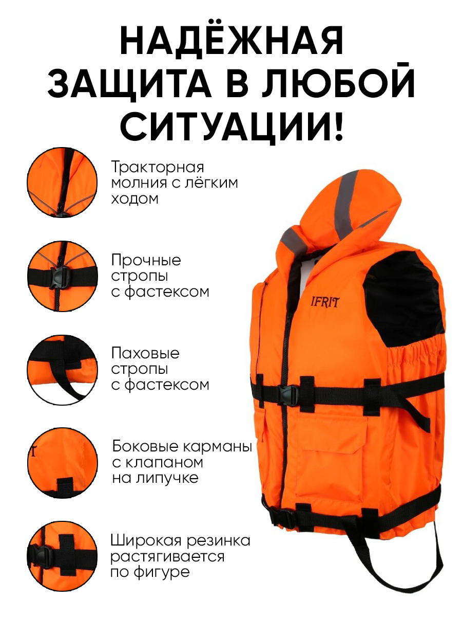 СохранитьСпасательный жилет взрослый "IFRIT 130" оранжевый, 130 кг. Гимс интересное: