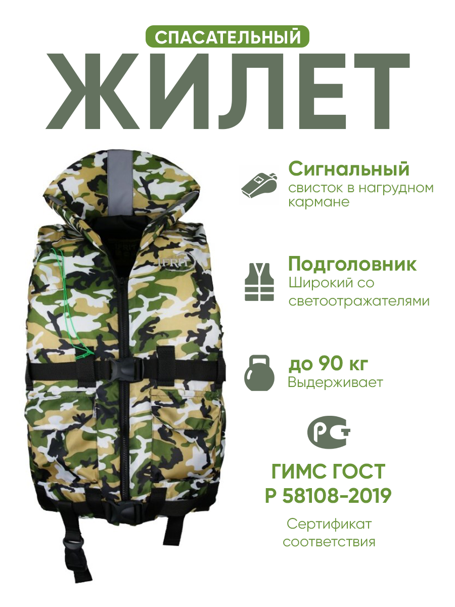 Купить Спасательный жилет взрослый "IFRIT 90" камуфляж, 90 кг. Гимс
