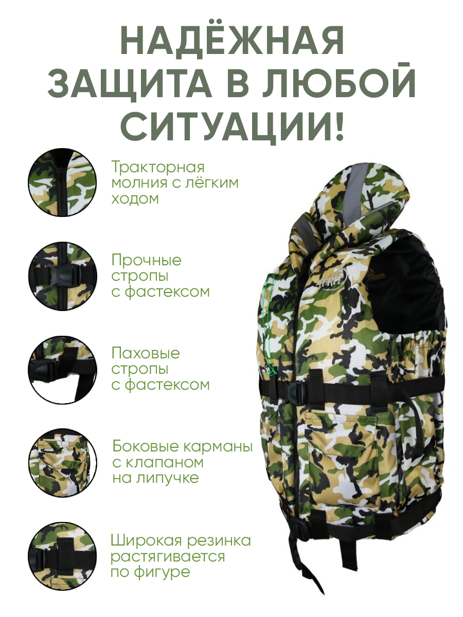 Спасательный жилет взрослый "IFRIT 110" камуфляж, 110 кг. Гимс