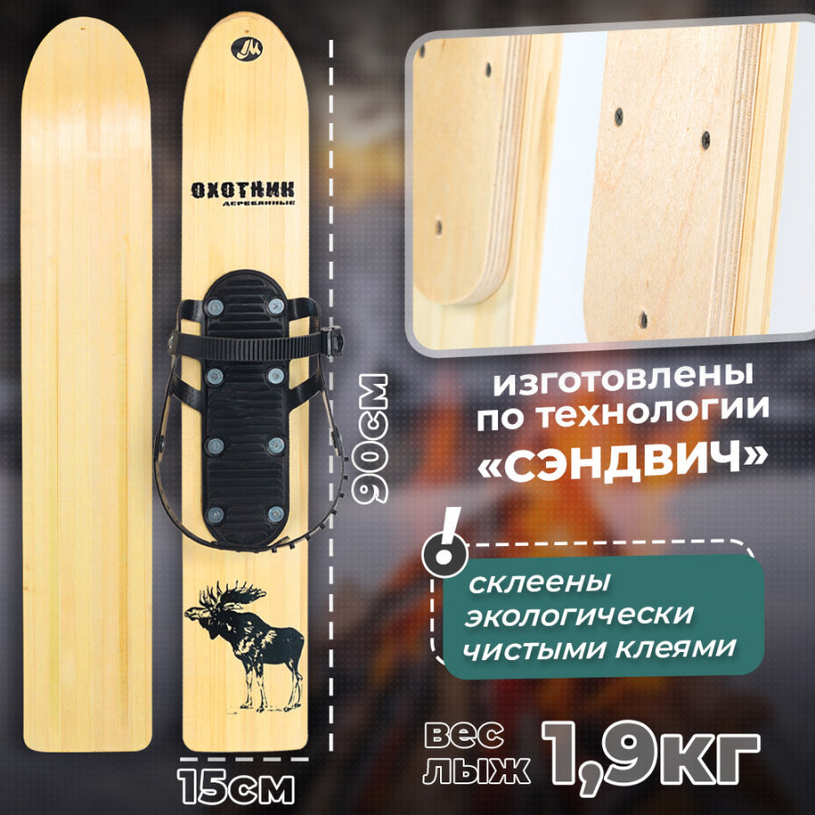 Лыжи охотничьи деревянные Маяк Охотник 90 х 15 см с полужестким креплением