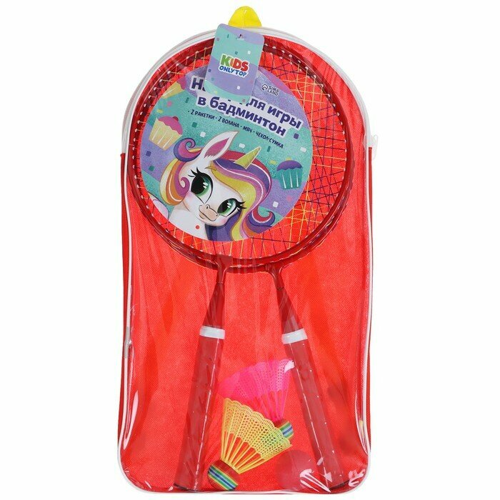 Купить Набор для бадминтона ONLYTOP «Пони»: 2 ракетки 44 см, 2 волана, мяч, чехол, цвет красный