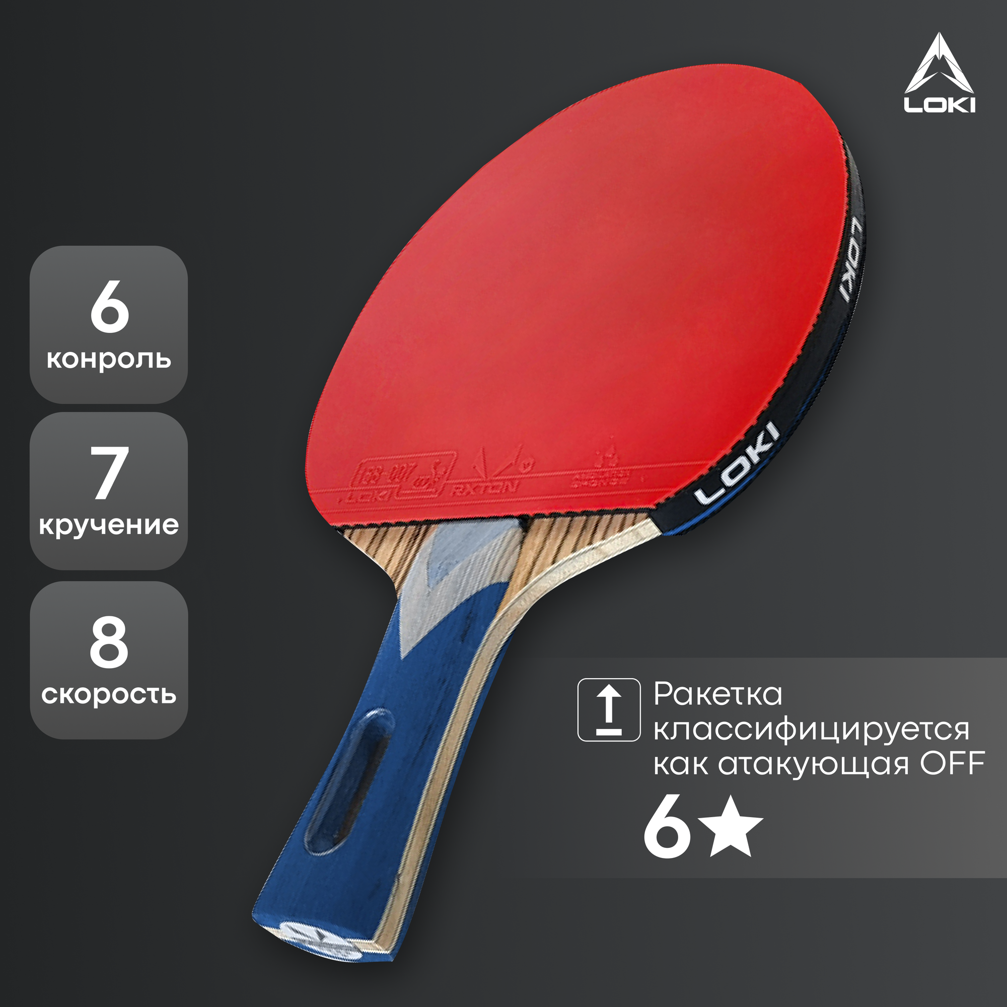 Ракетка для настольного тенниса с чехлом LOKI R6, OFF