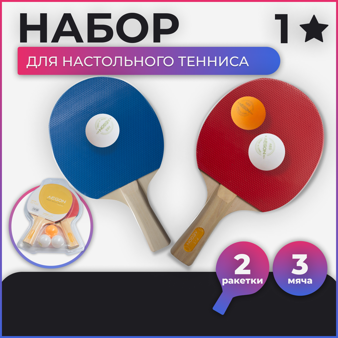 Набор для настольного тенниса +3 шарика, пинг-понг