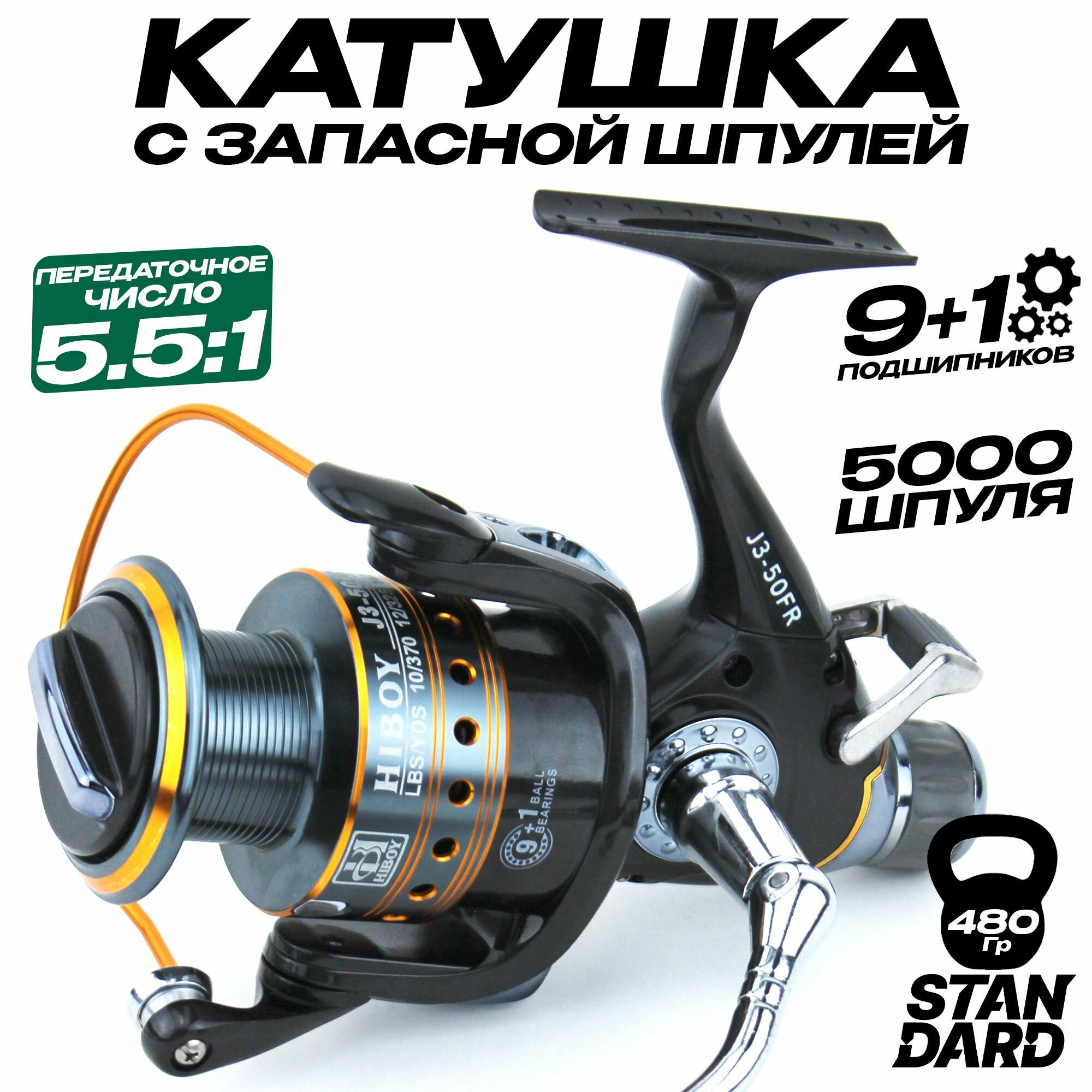 Купить Катушка фидерная HAIBAO FISHING 5000 с байтранером (9+1 подшипник) с запасной шпулей