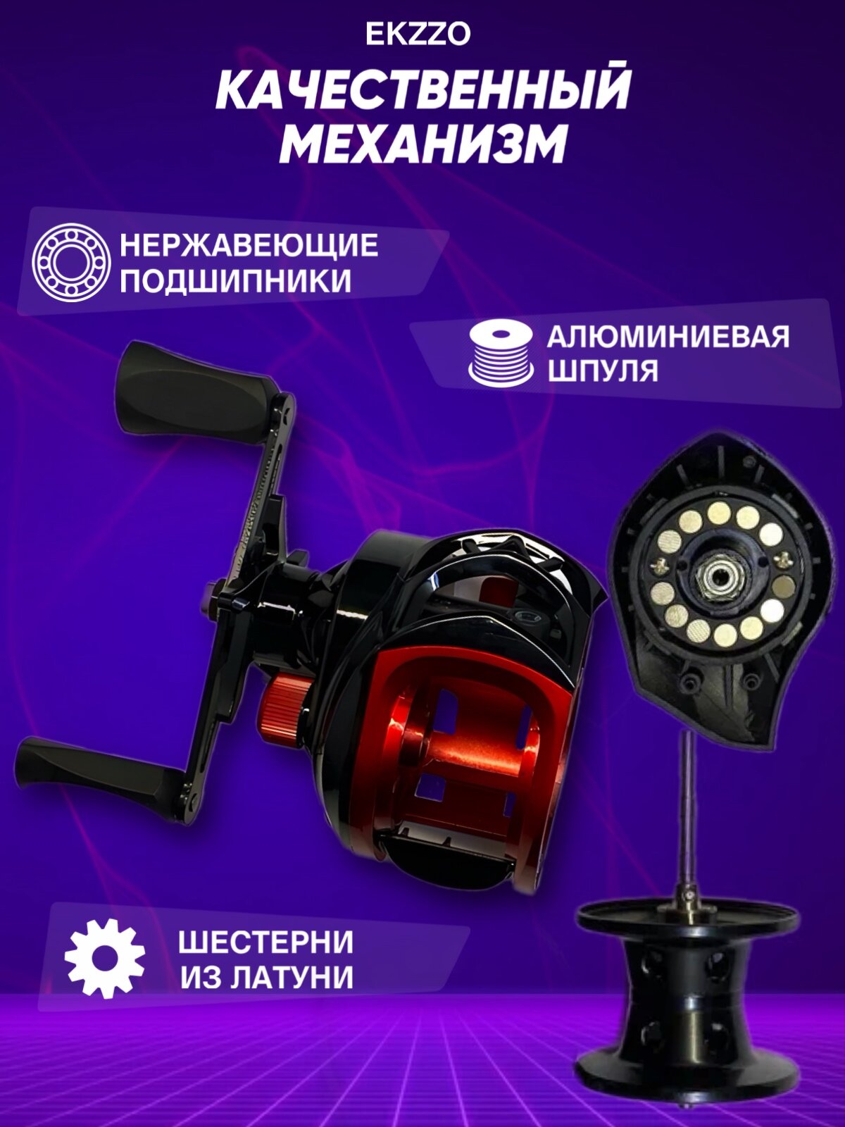 Мультипликаторная рыболовная катушка под левую руку 2000 18+1, красный/черный, 7,2 : 1 интересное: