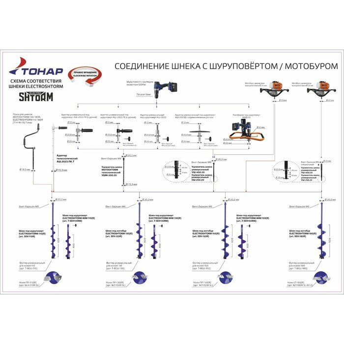 Тонар Шнек под шуруповерт ELECTROSHTORM 110R правое вращение SEH-110R 330124
