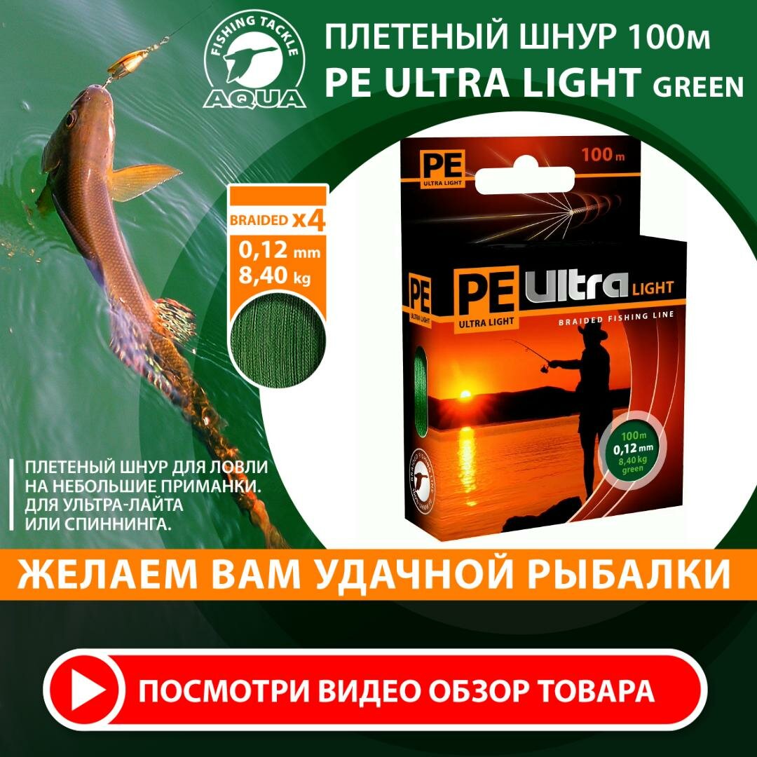Ниже Вы можете прочитать отзывы на Плетеный шнур для рыбалки AQUA PE Ultra Light Dark Green 100m 0.12mm 8.4kg, ознакомится с подробными характеристиками, посмотреть интересные обзоры и фотографии на Плетеный шнур для рыбалки AQUA PE Ultra Light Dark Green 100m 0.12mm 8.4kg.